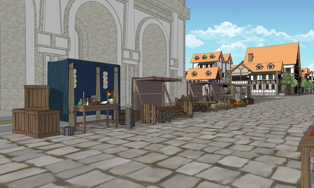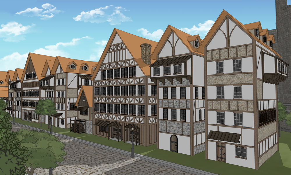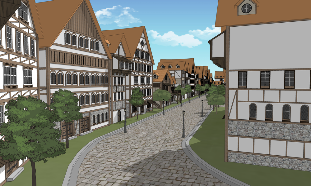 이번달 신규 웹툰 스케치업 배경 [판타지 중세마을ver.2] 입니다.