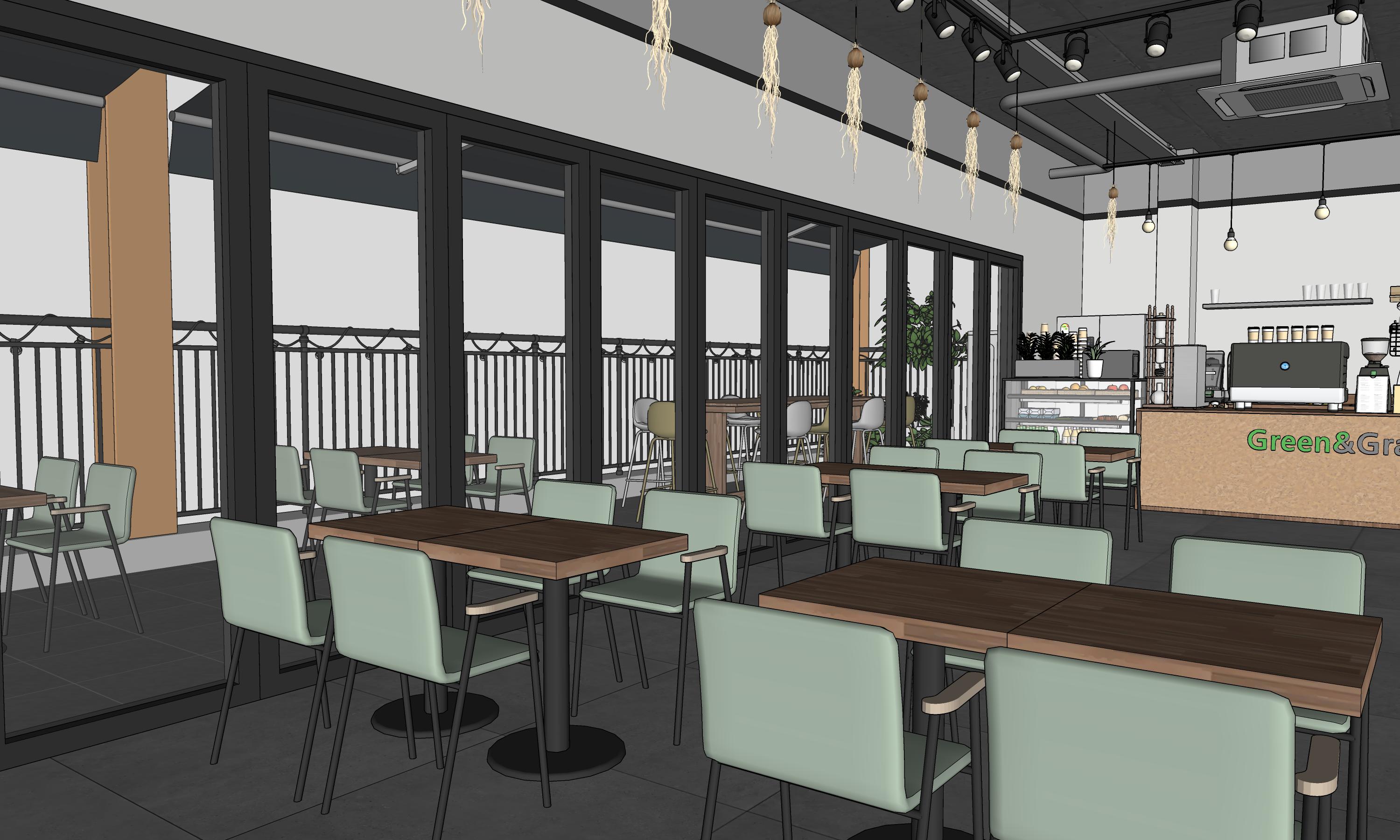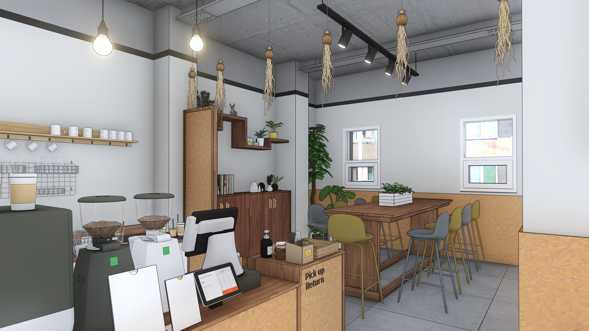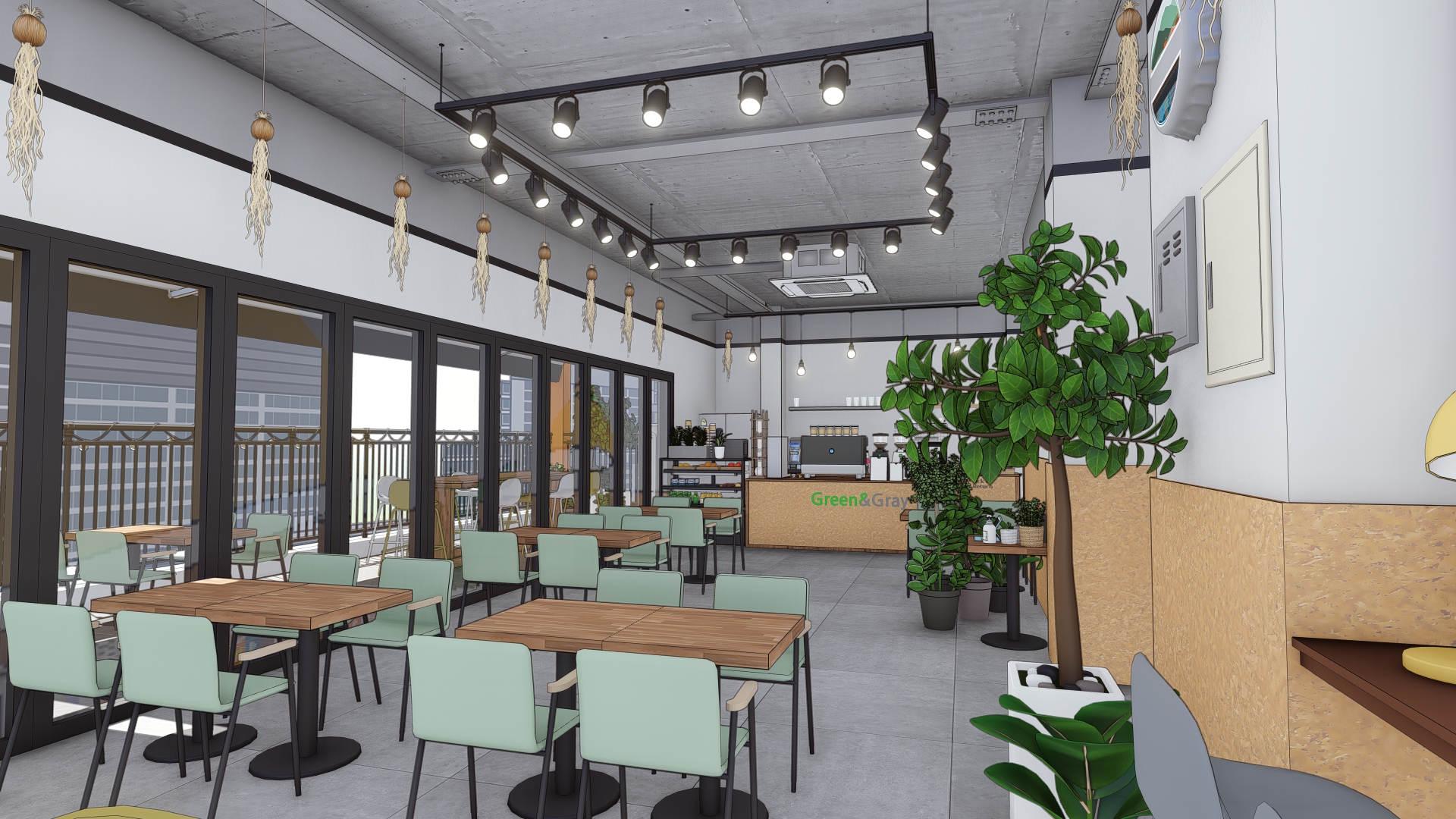 이번달 신규 웹툰 스케치업 배경 [그린&그레이 카페] 입니다.