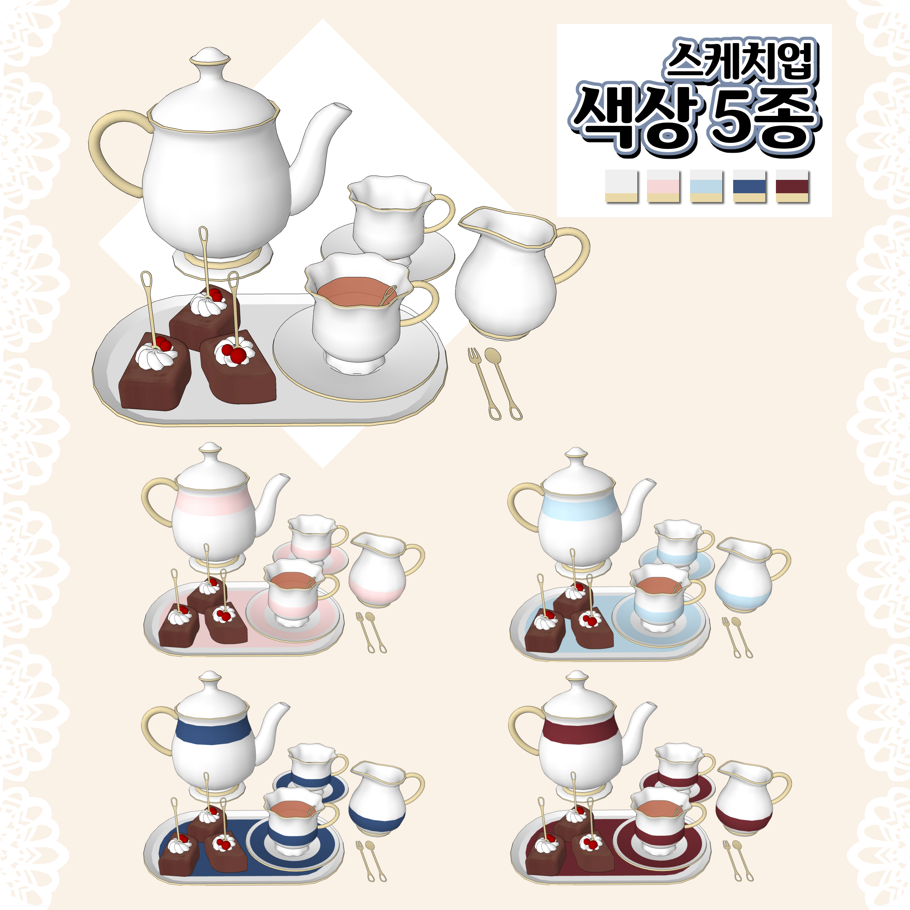 이번달 신규 웹툰 스케치업 배경 [티세트2 + 초코파운드케이크 ]입니다.