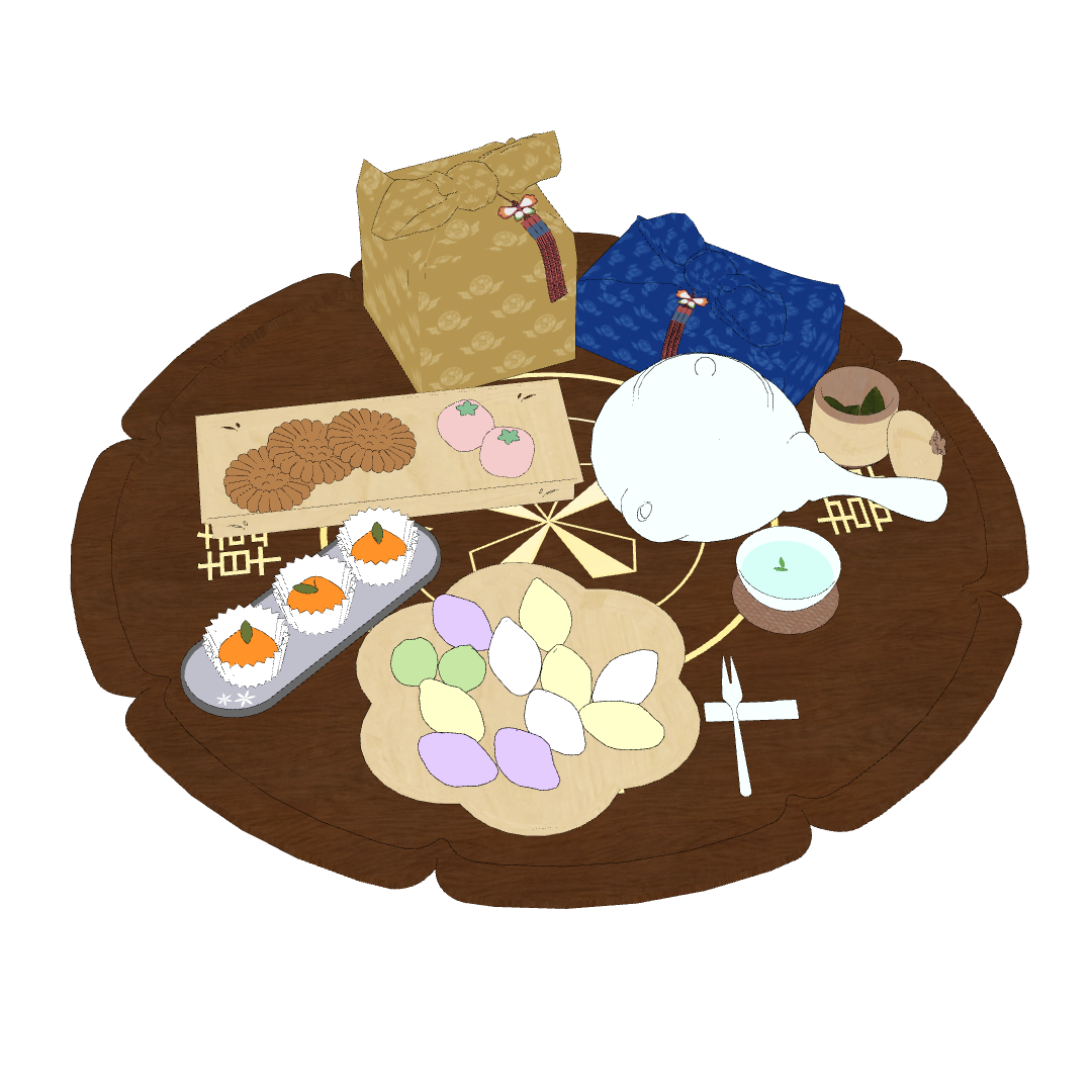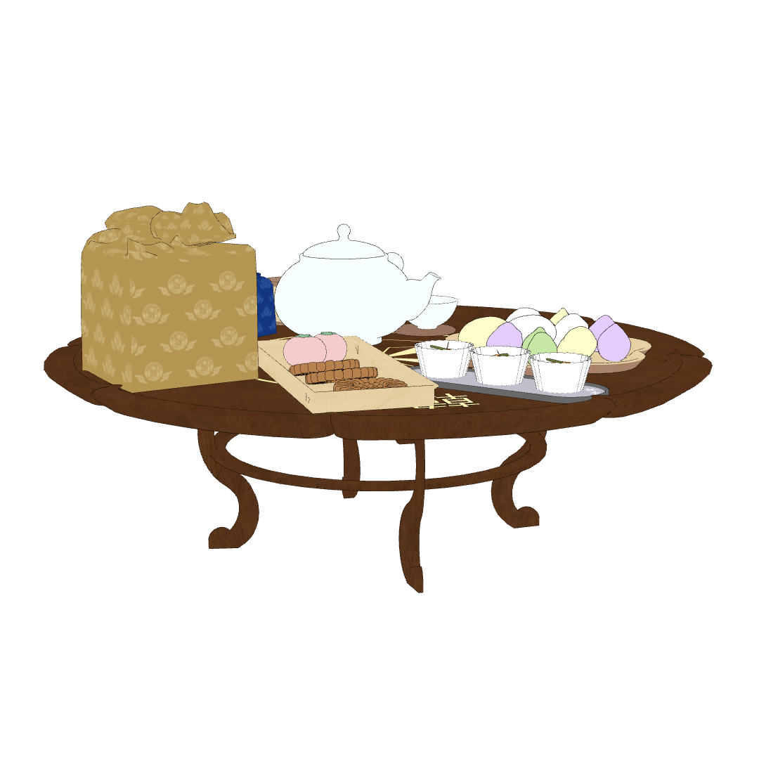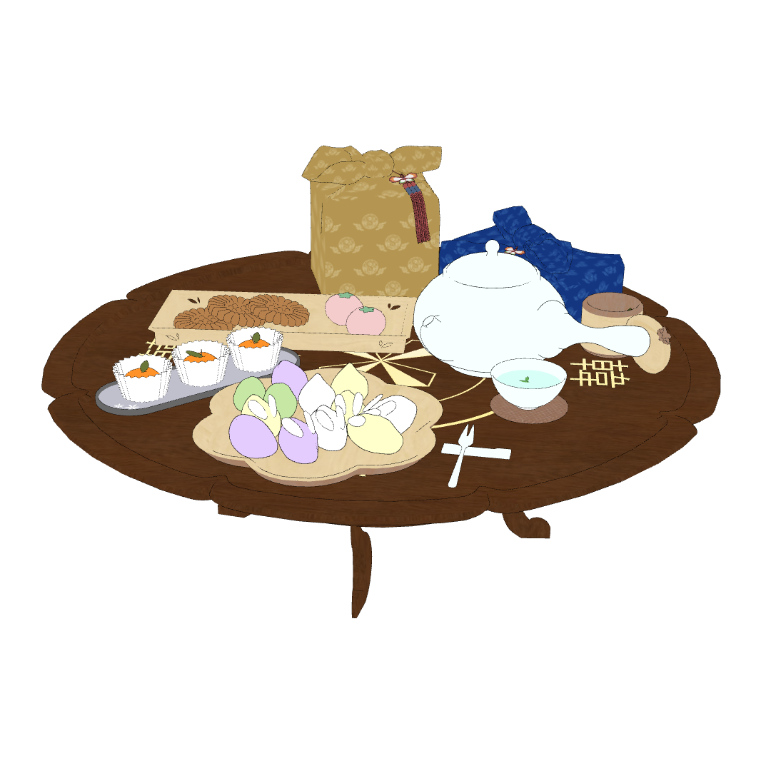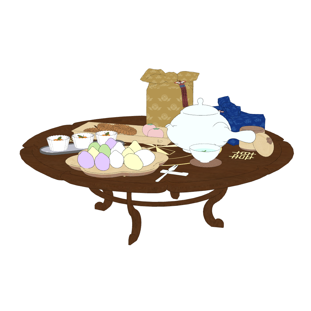 다과상 위에는 토끼 송편과 약과 등 다양한 한과들이 가득 올려져 있습니다!