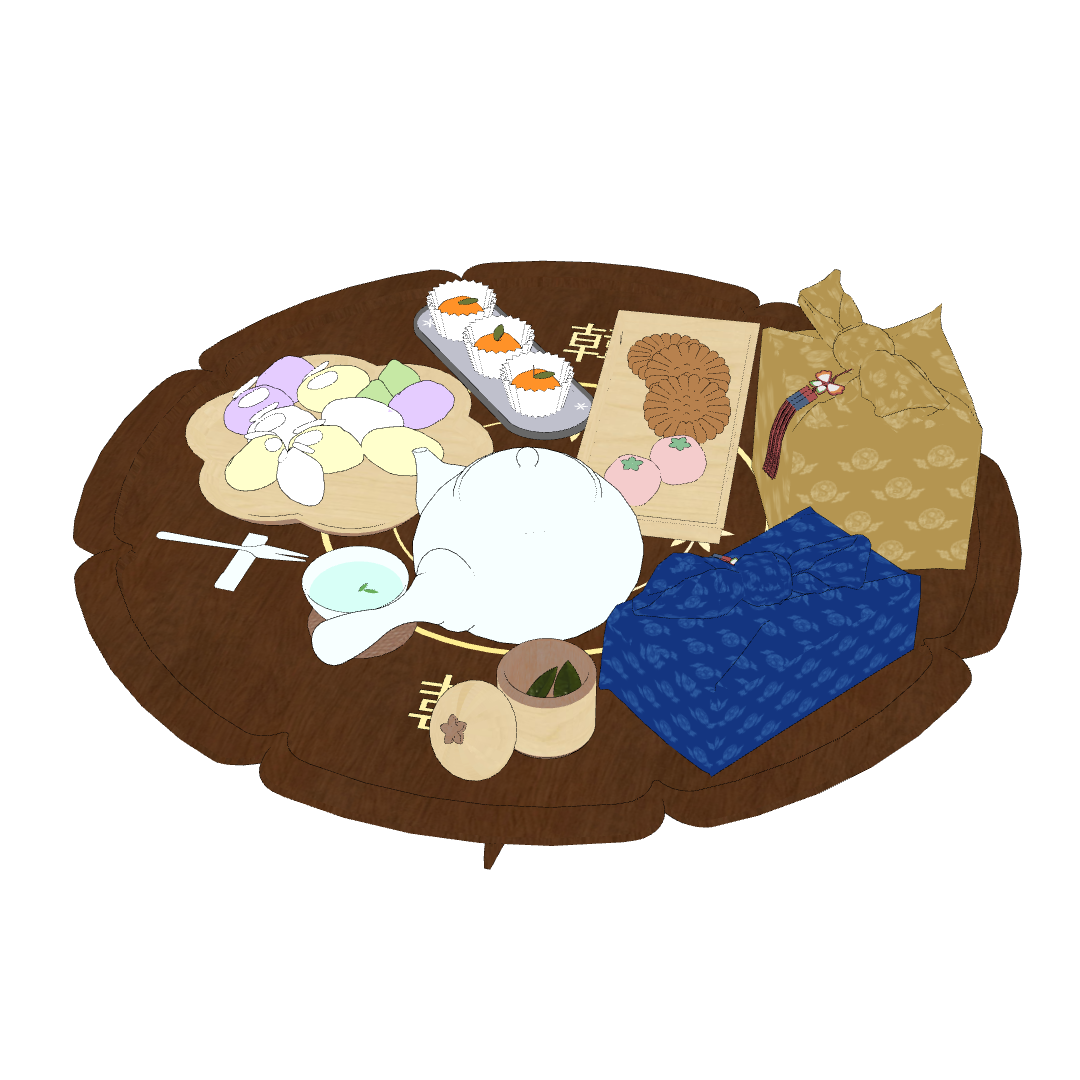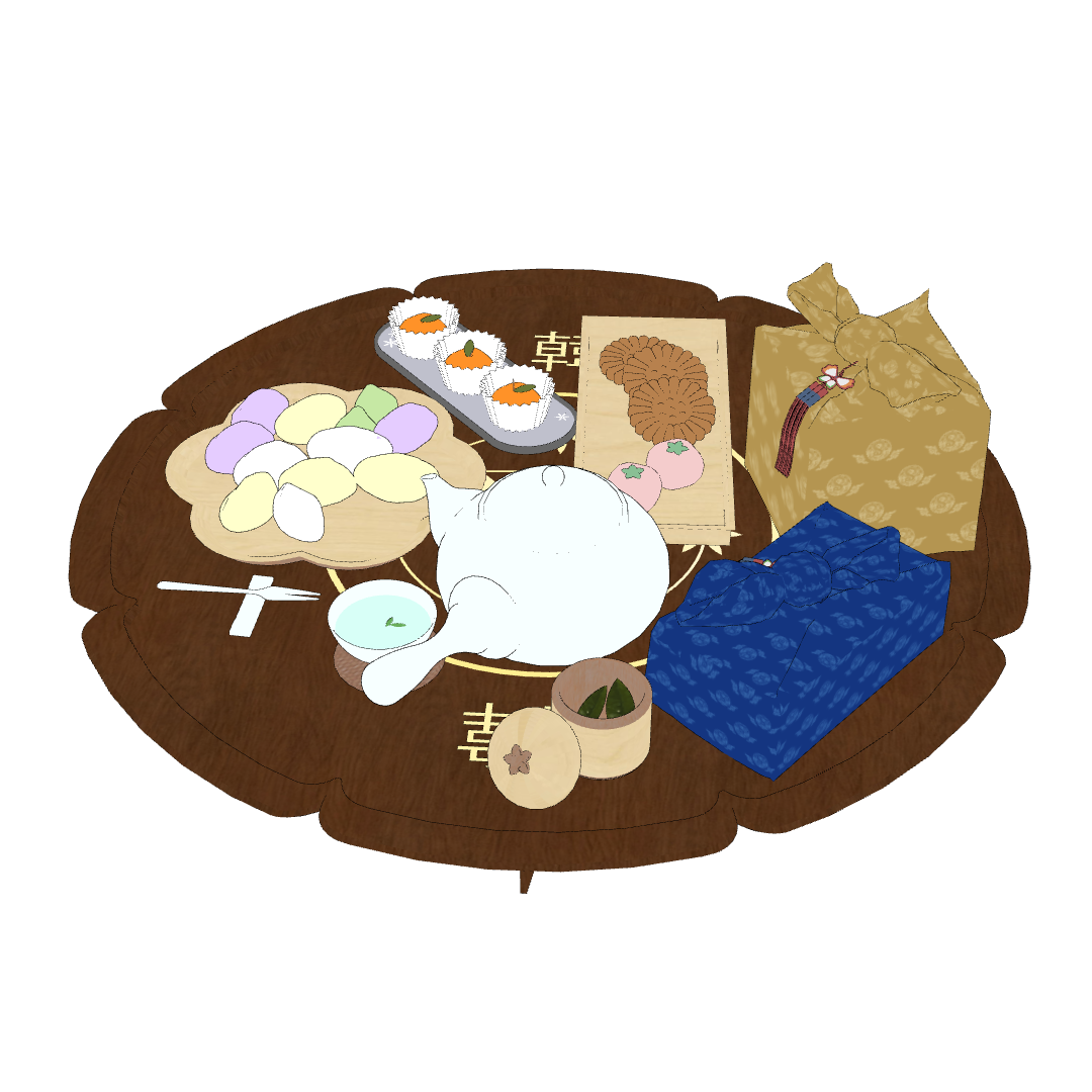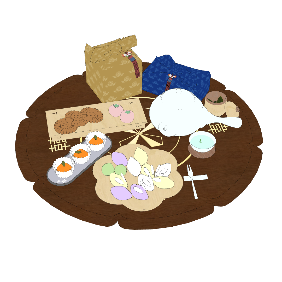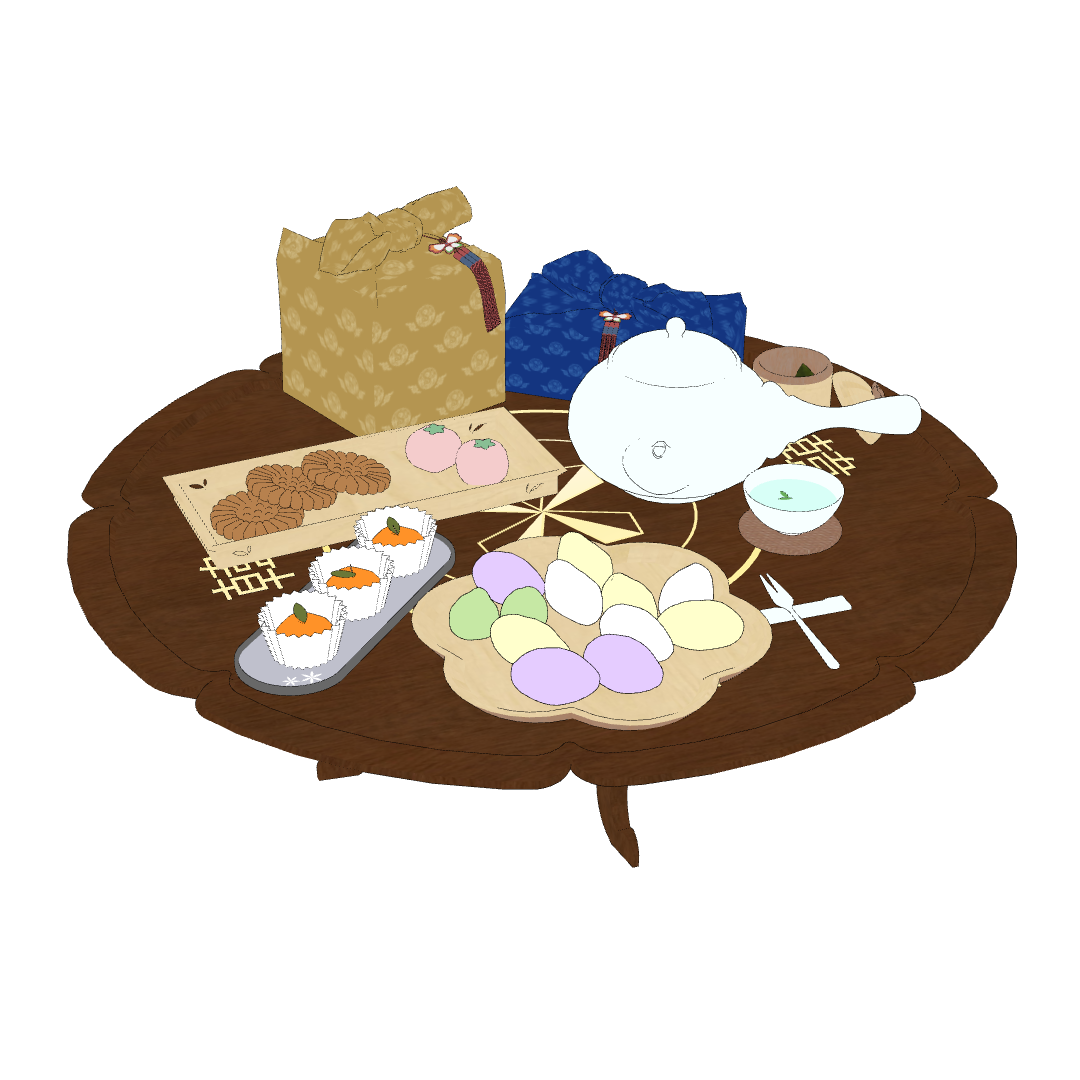 다과상 위에는 토끼 송편과 약과 등 다양한 한과들이 가득 올려져 있습니다!