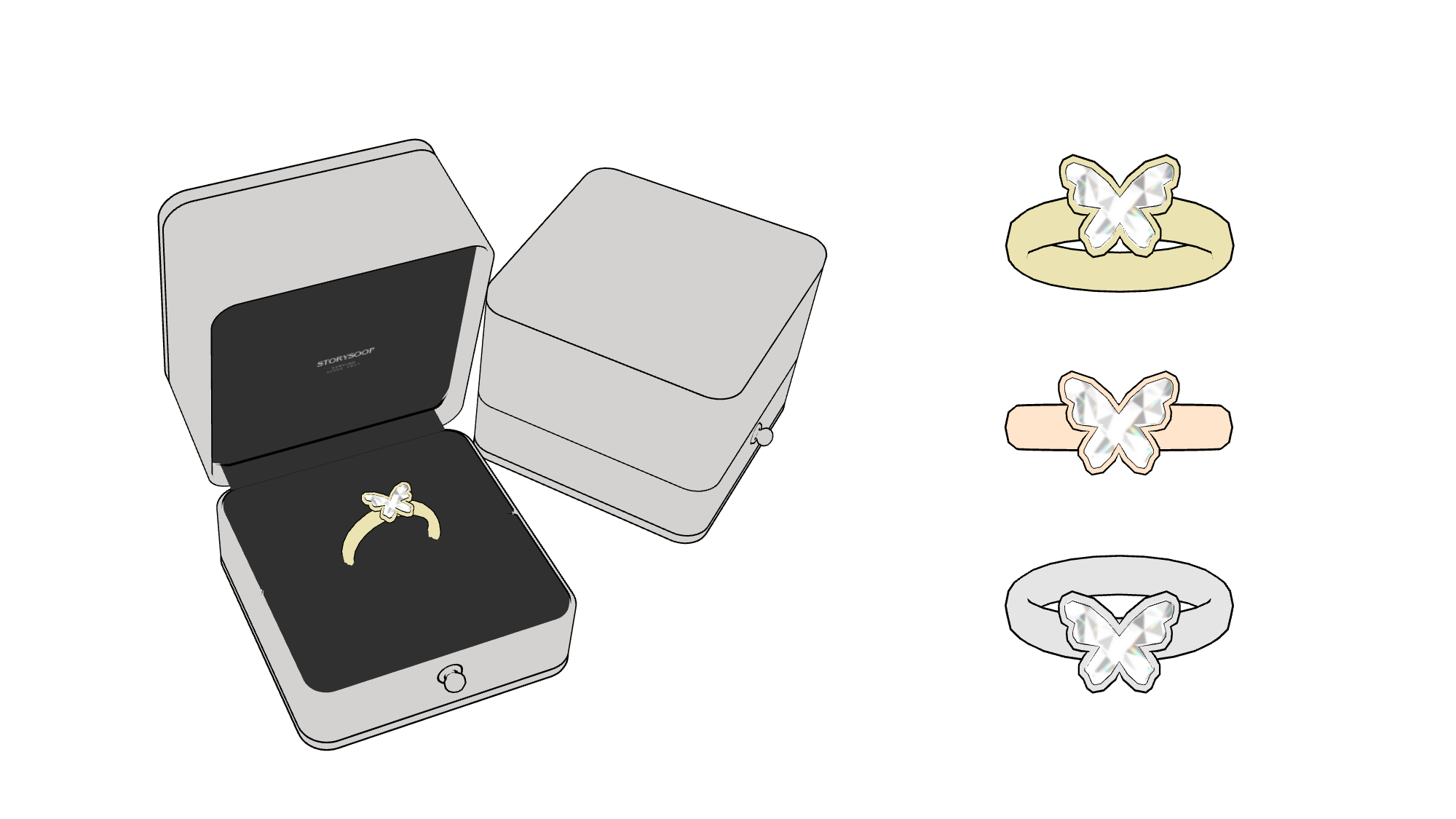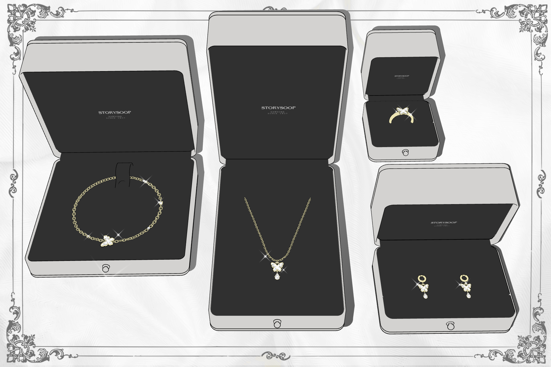 해당 상품은 나비 쥬얼리 반지, 목걸이, 귀걸이 풀 세트로 구성되어 있습니다.