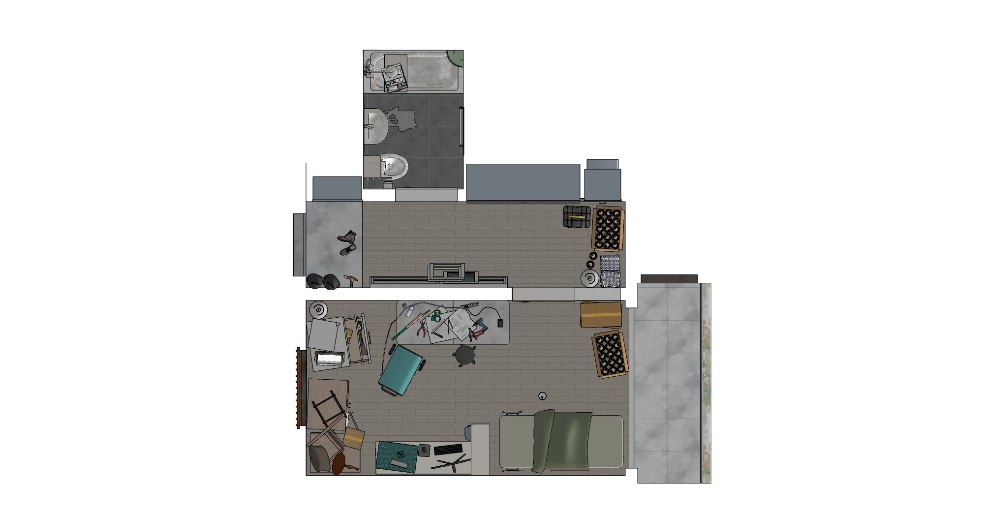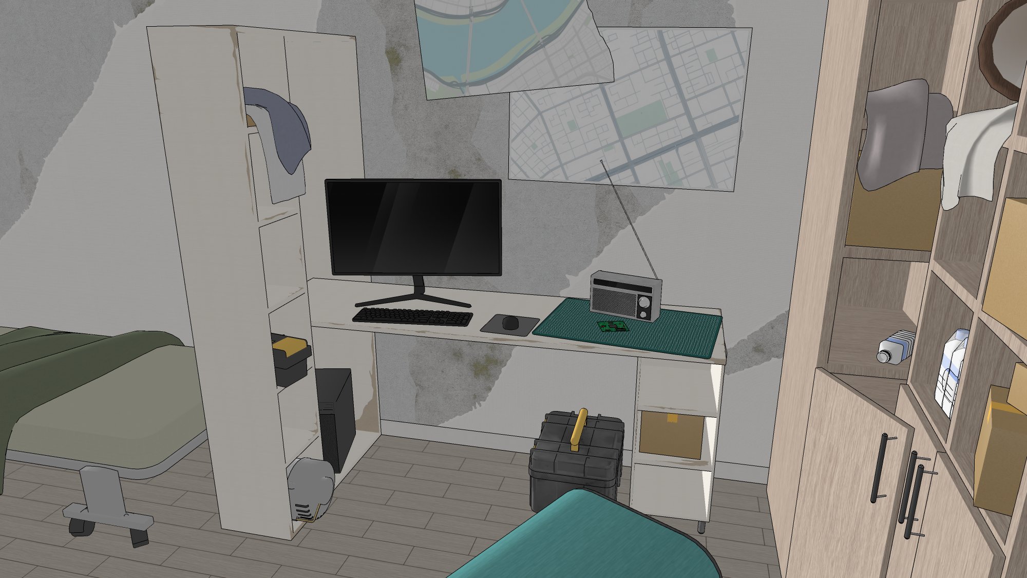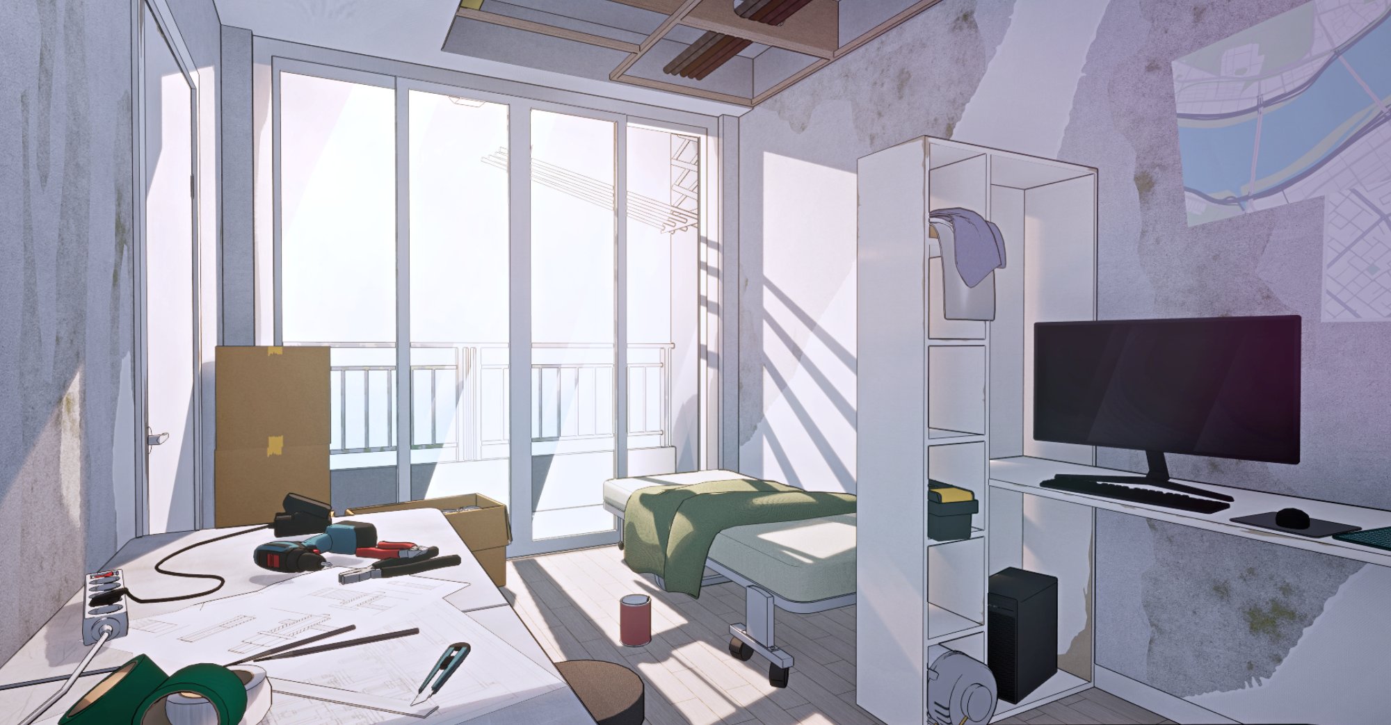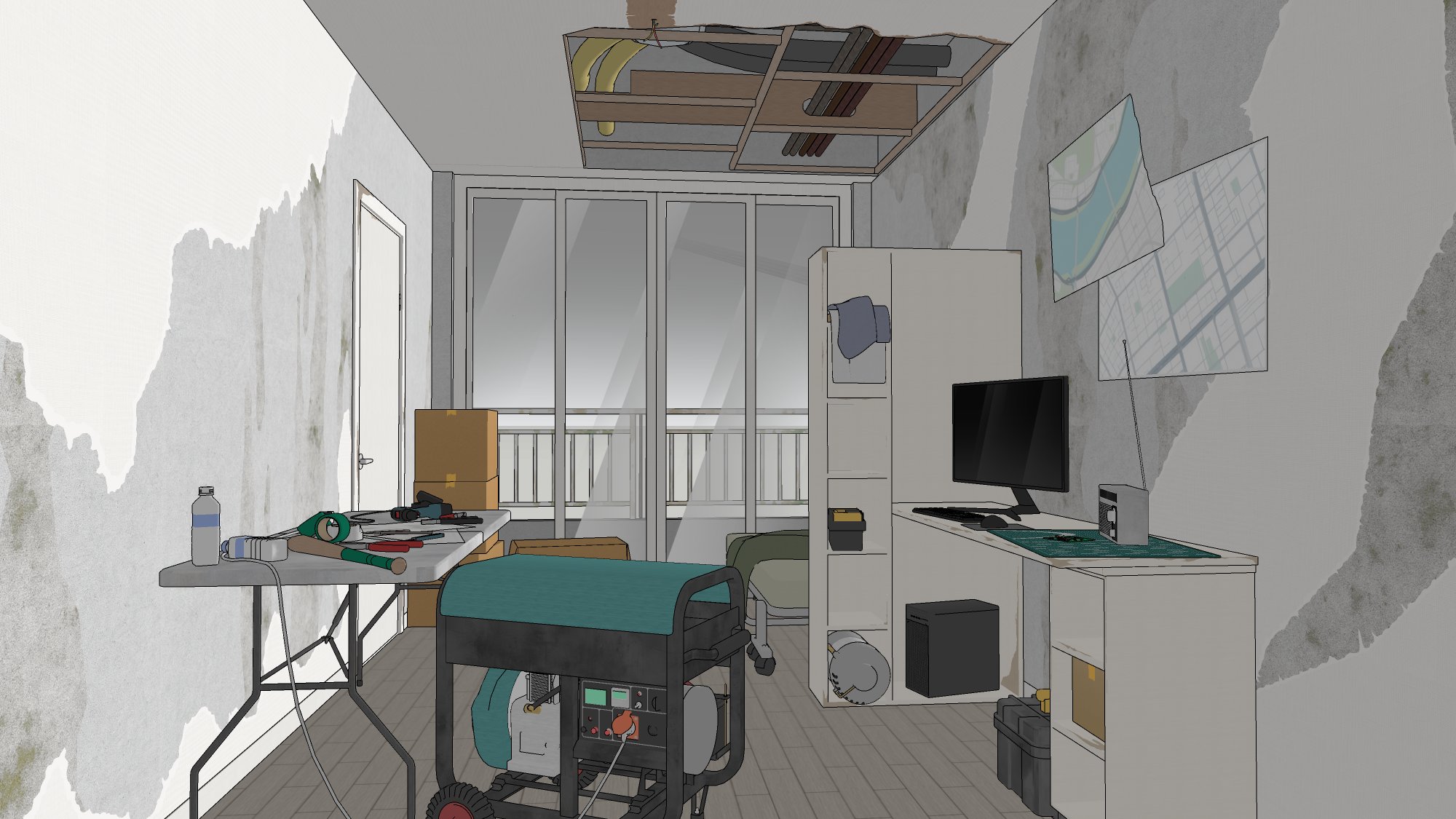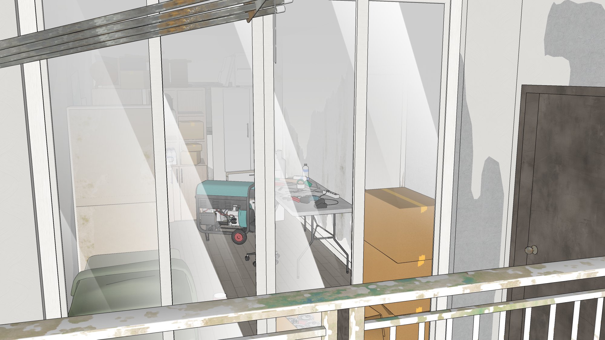 아포칼립스 풍의 베란다 딸린 1.5룸을 상상하며 제작한 배경입니다.