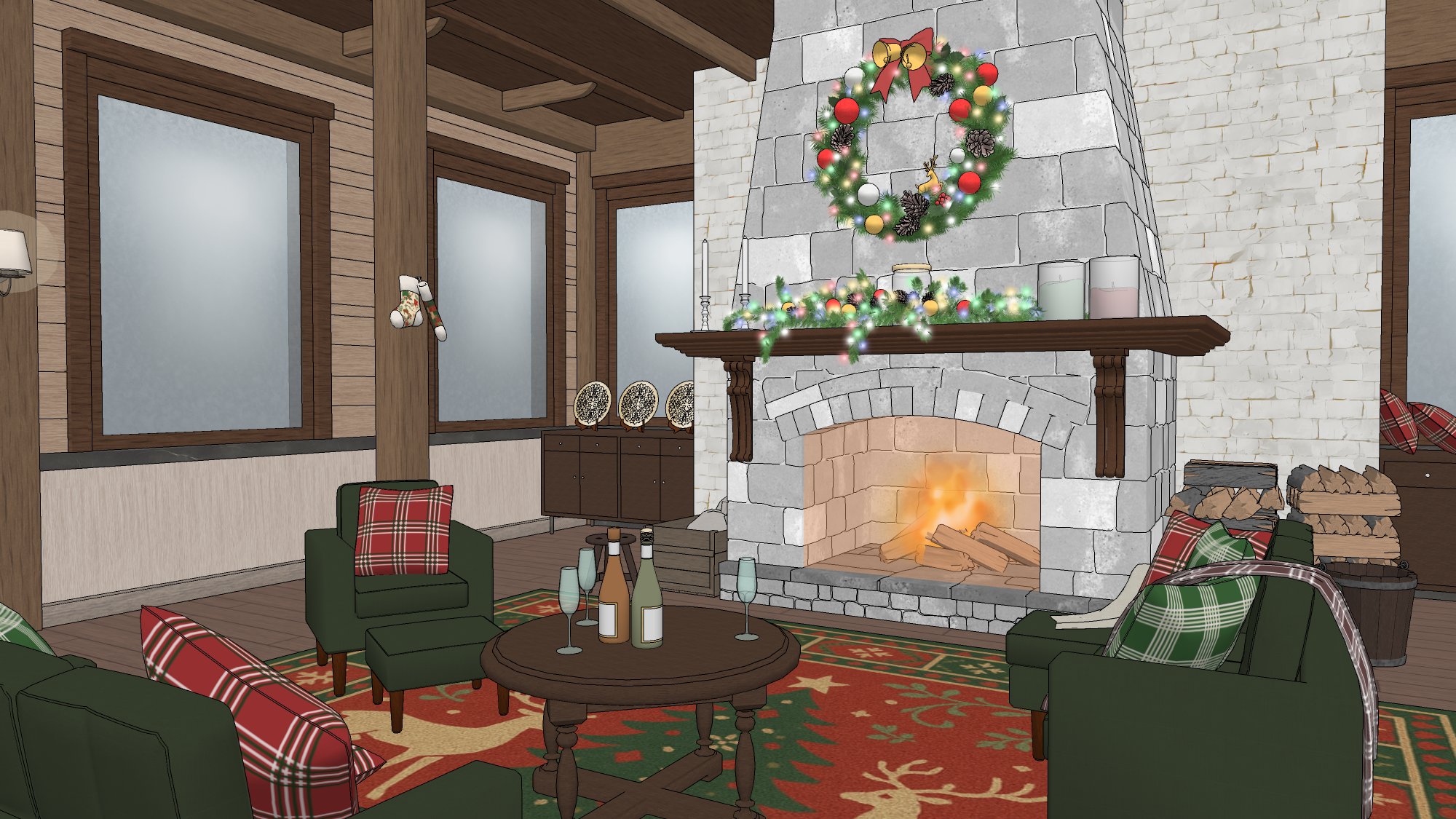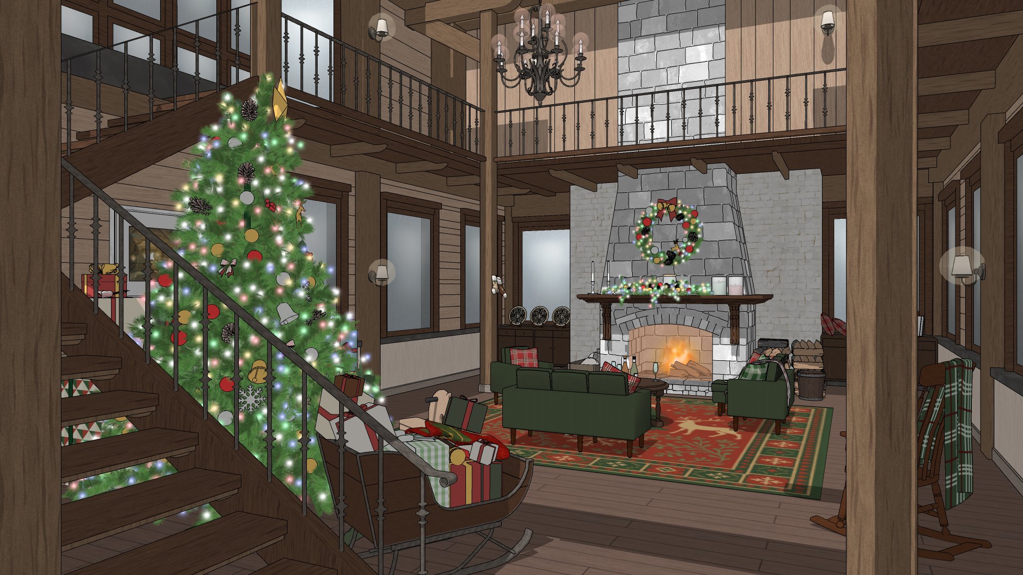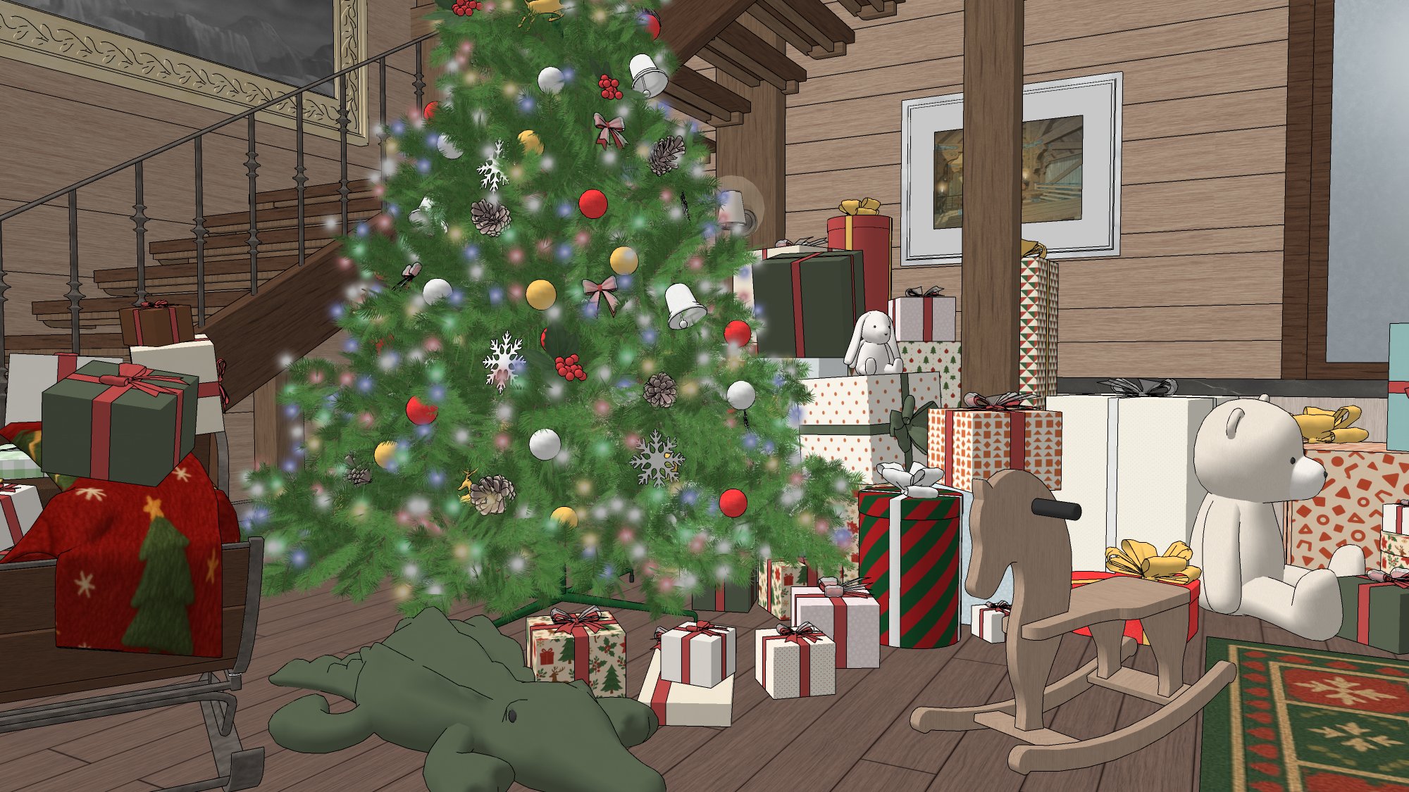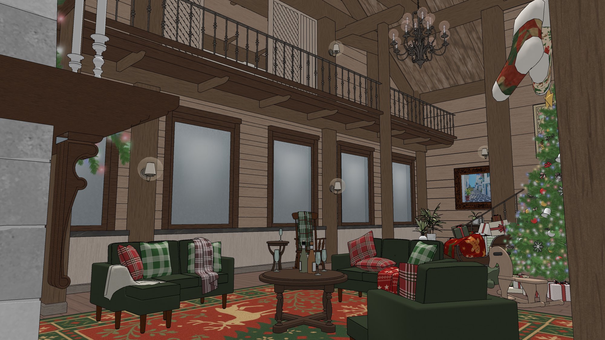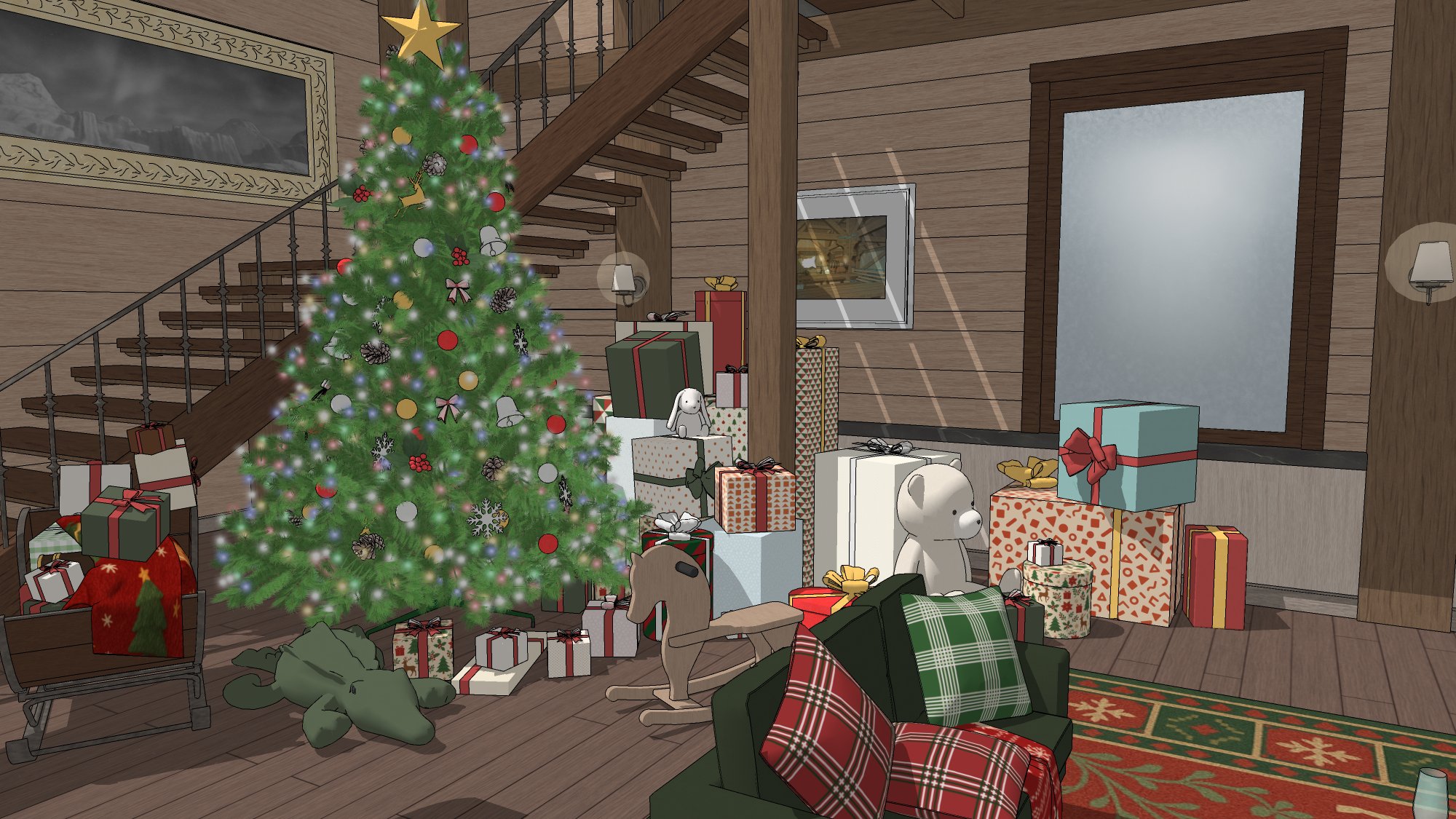 #현대 #현대물 #현대배경 #현대물배경 #크리스마스 #연말 #파티 #선물상자 #인형 #크리스마스트리 #벽난로 #X-MAS #귀여운 #따뜻한 #코지 #cozy #아늑한 #별장 #트리 #담요 #쿠션 #발코니