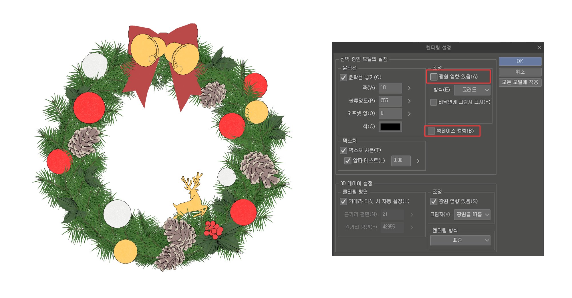 ※ 원활한 동작을 위해 [클립스튜디오 랜더링 설정 - 백페이스 컬링]을 끄고 사용해주세요.