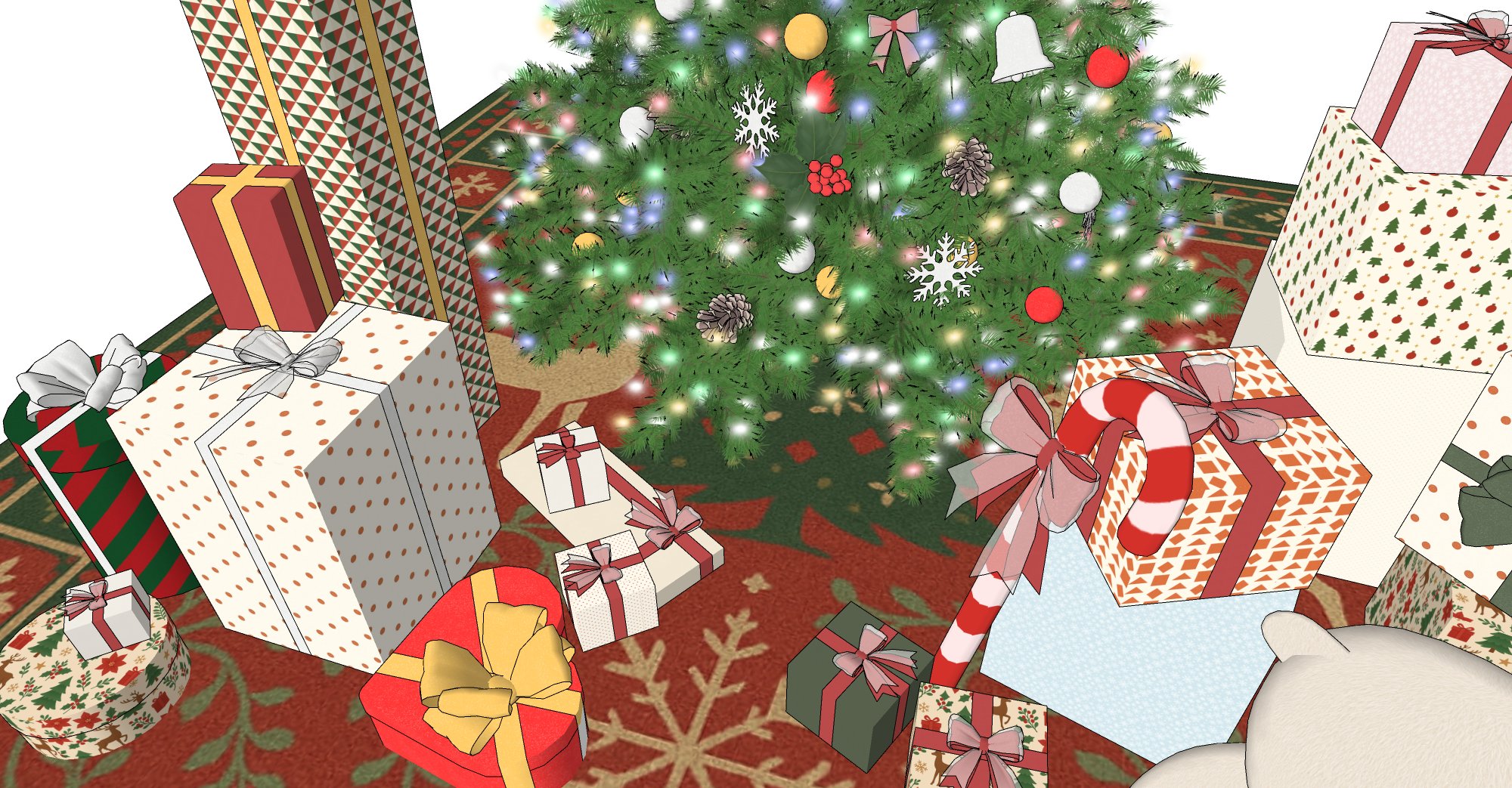 크리스마스하면 떠오르는 크리스마스 트리와 선물상자입니다!