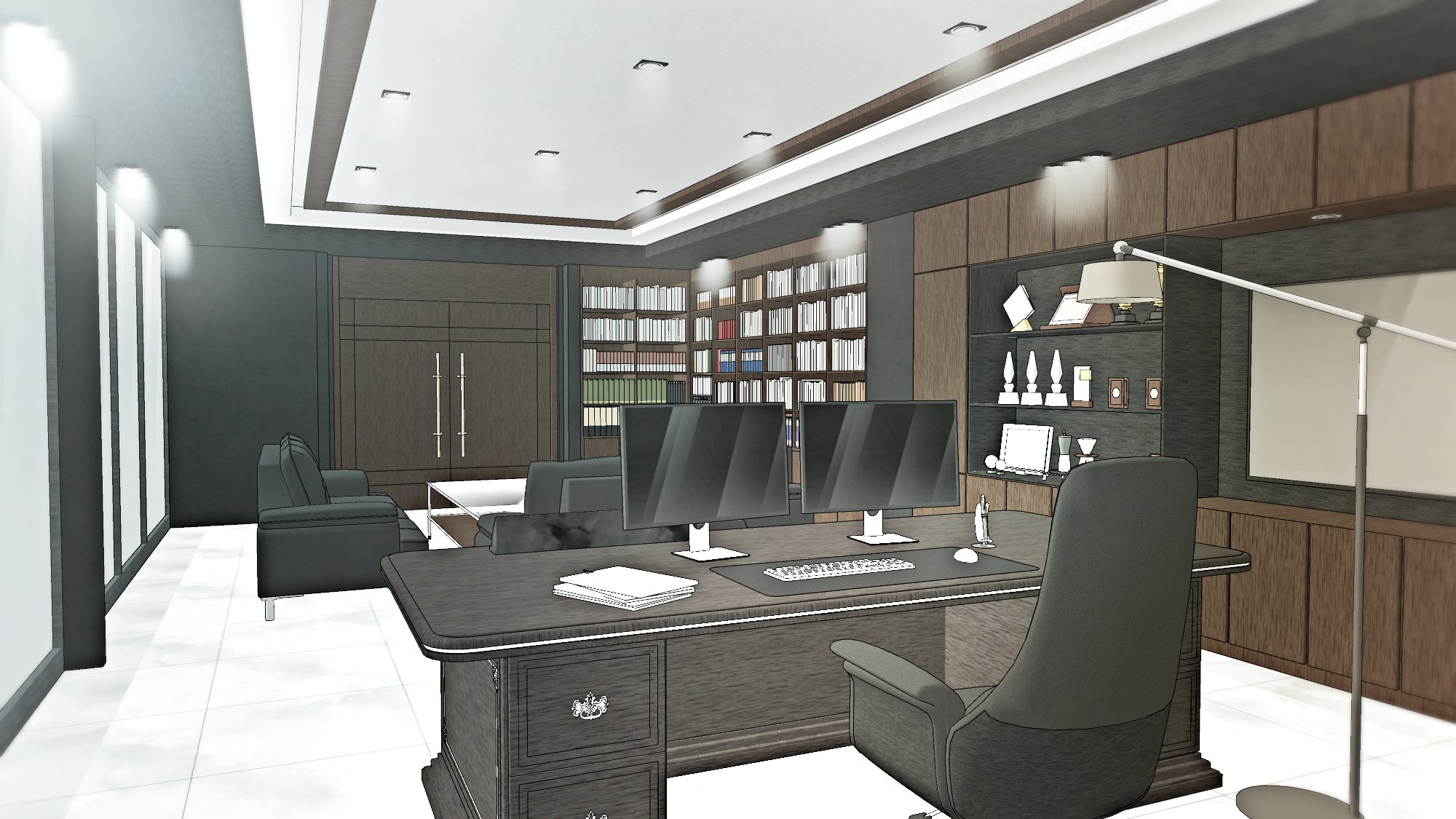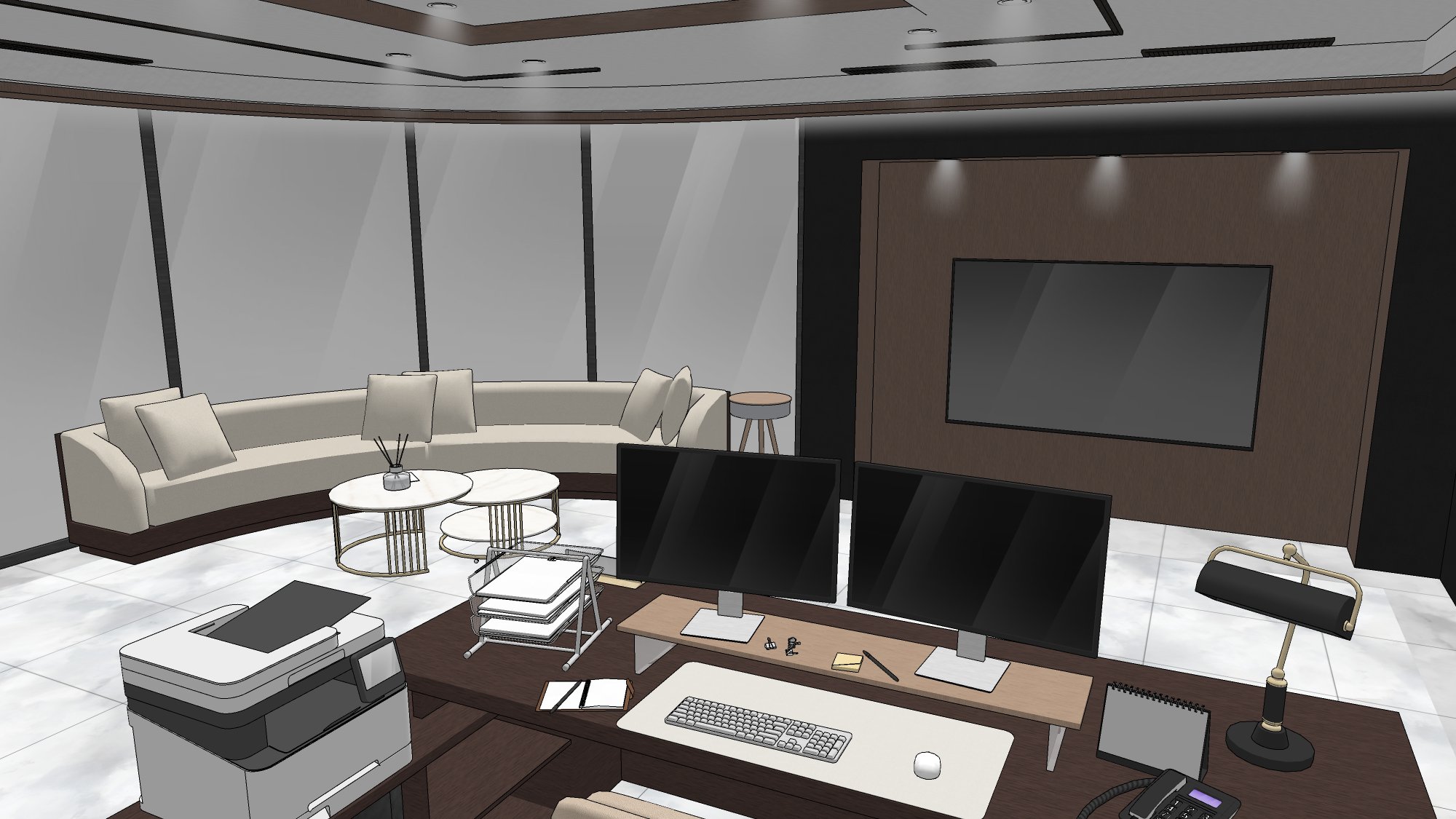 무게감 있는 회장실 등 현대 장르 실내 skp 배경 입니다.