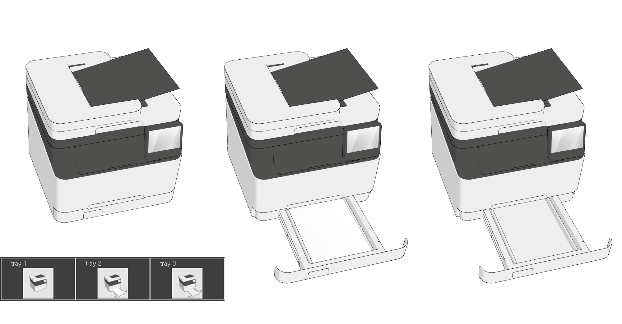 ※ 상단부, 하단 용지함에 동적기능요소가 적용되어 있습니다.
