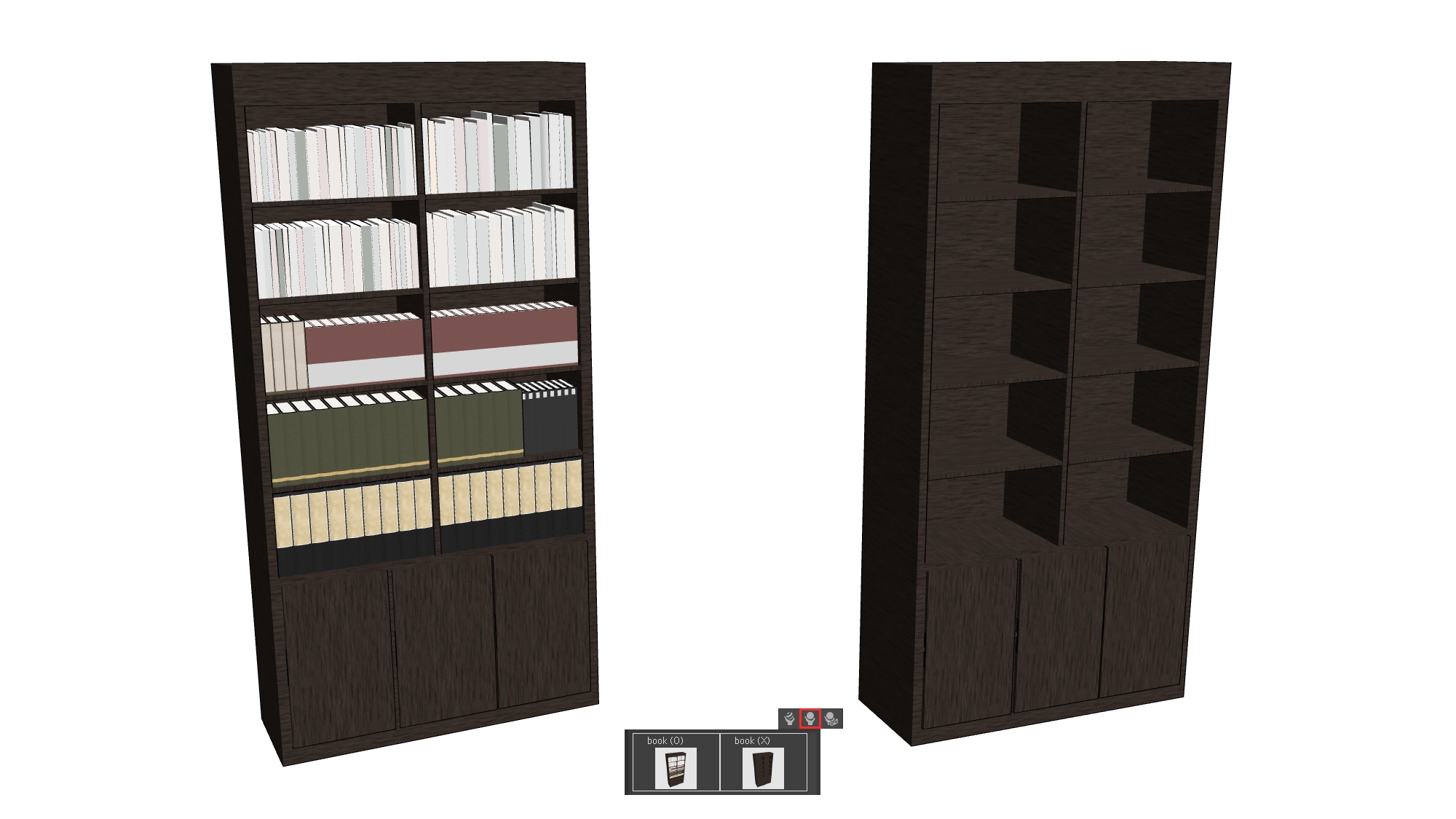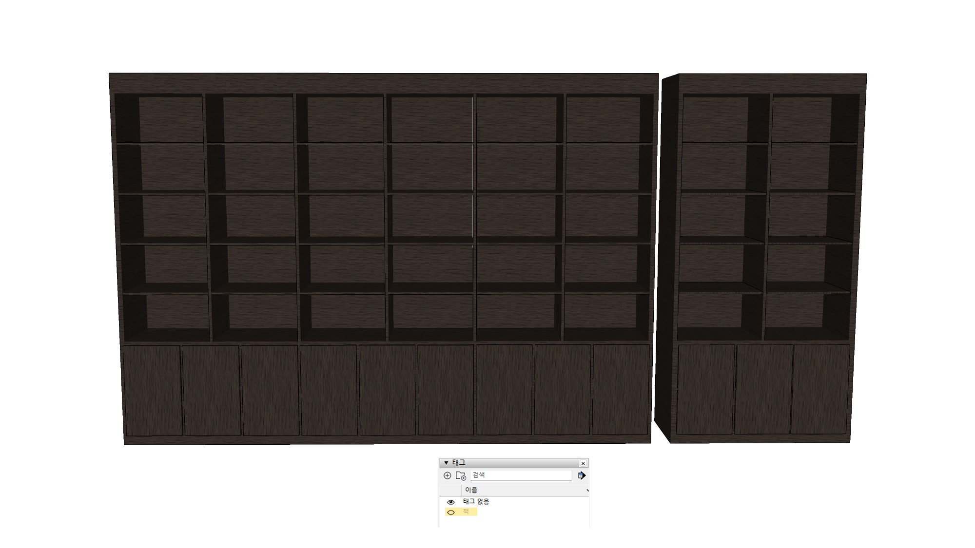 ※ skp 파일의 태그 기능과 cs3o 머테리얼로 책을 on/off 가능합니다.