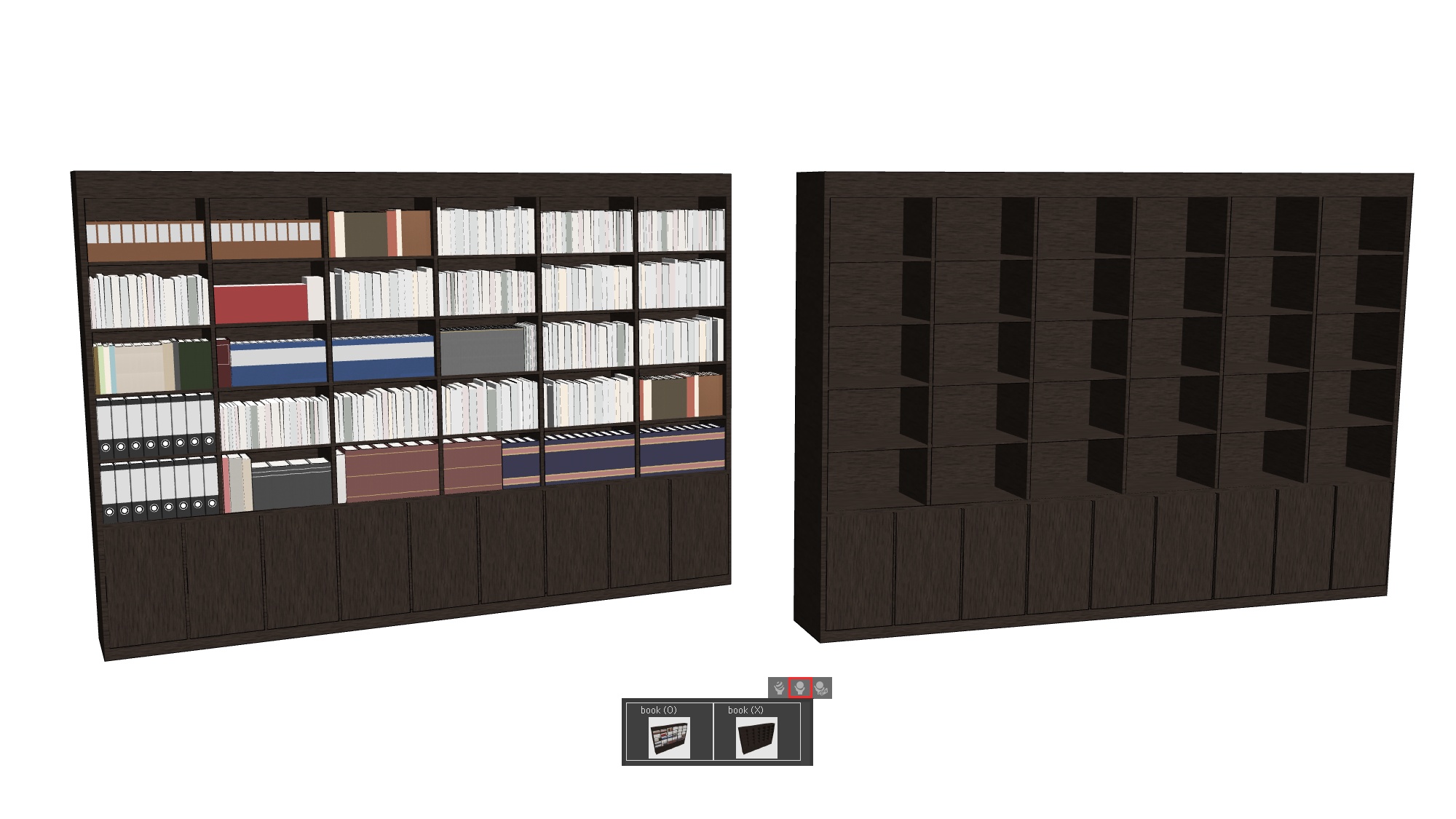 사무실, 서재, 거실 등 다양한 실내 공간에 배치할 수 있는 책장 에셋입니다.
