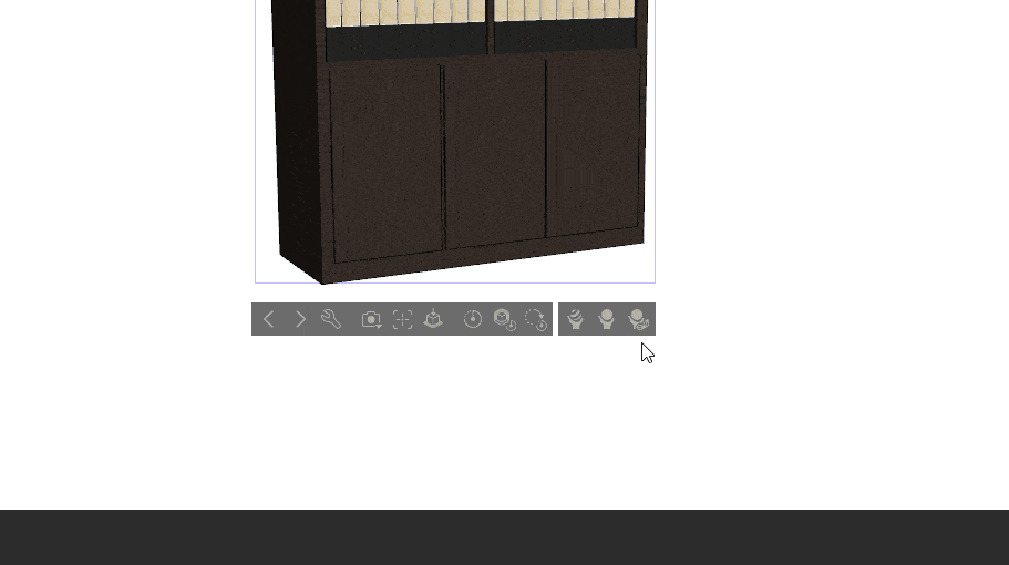 동적 기능 요소가 적용되어 책장 하단 수납장을 열고 닫는 연출이 가능합니다.