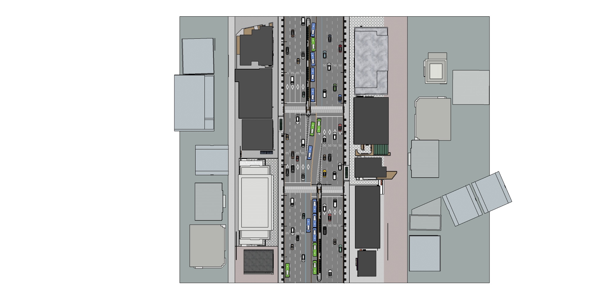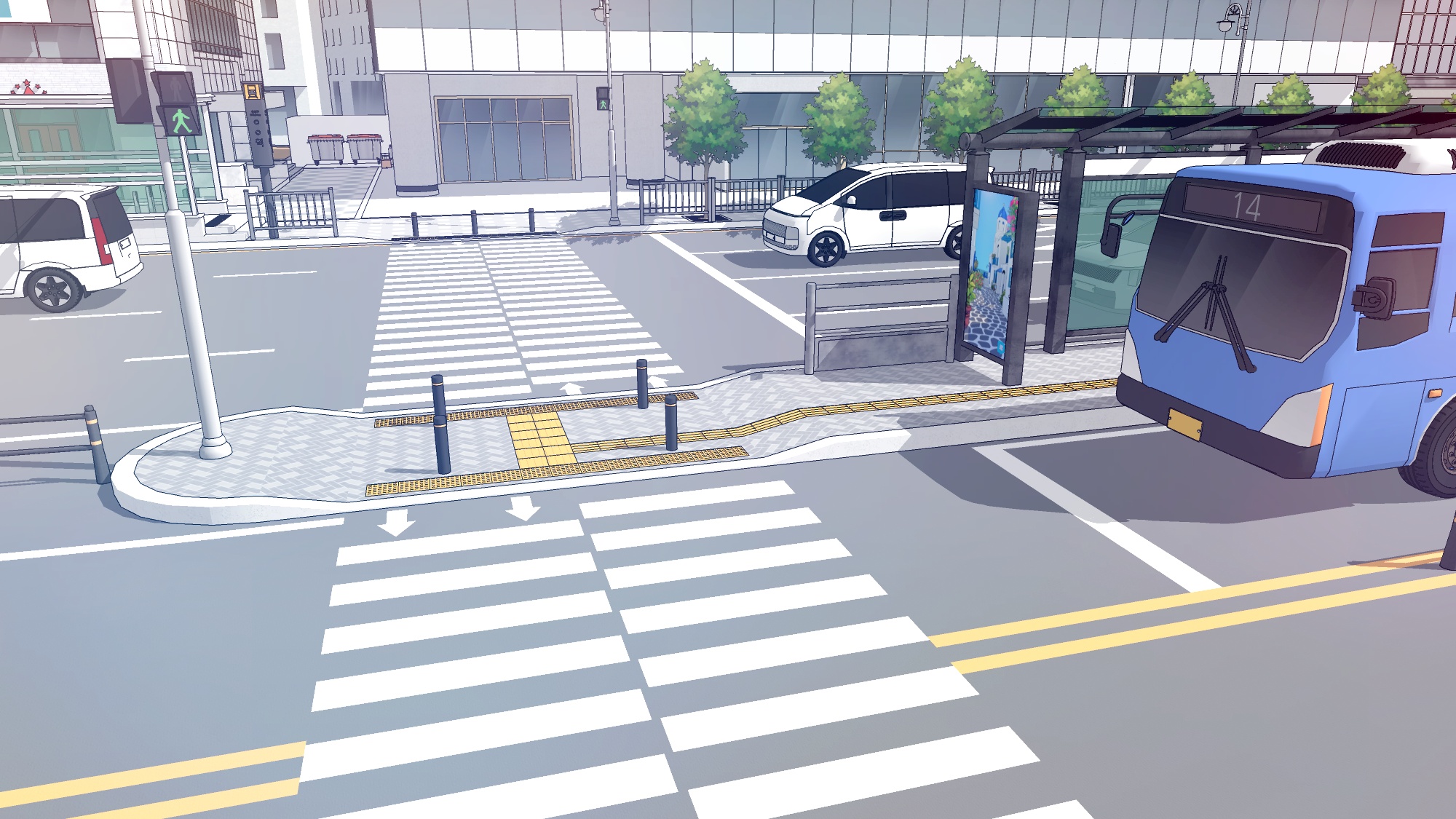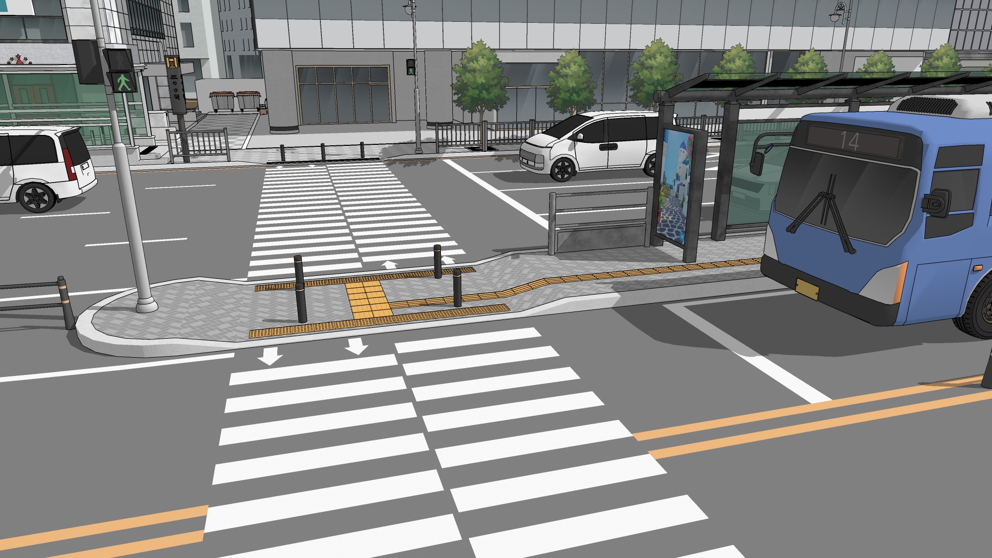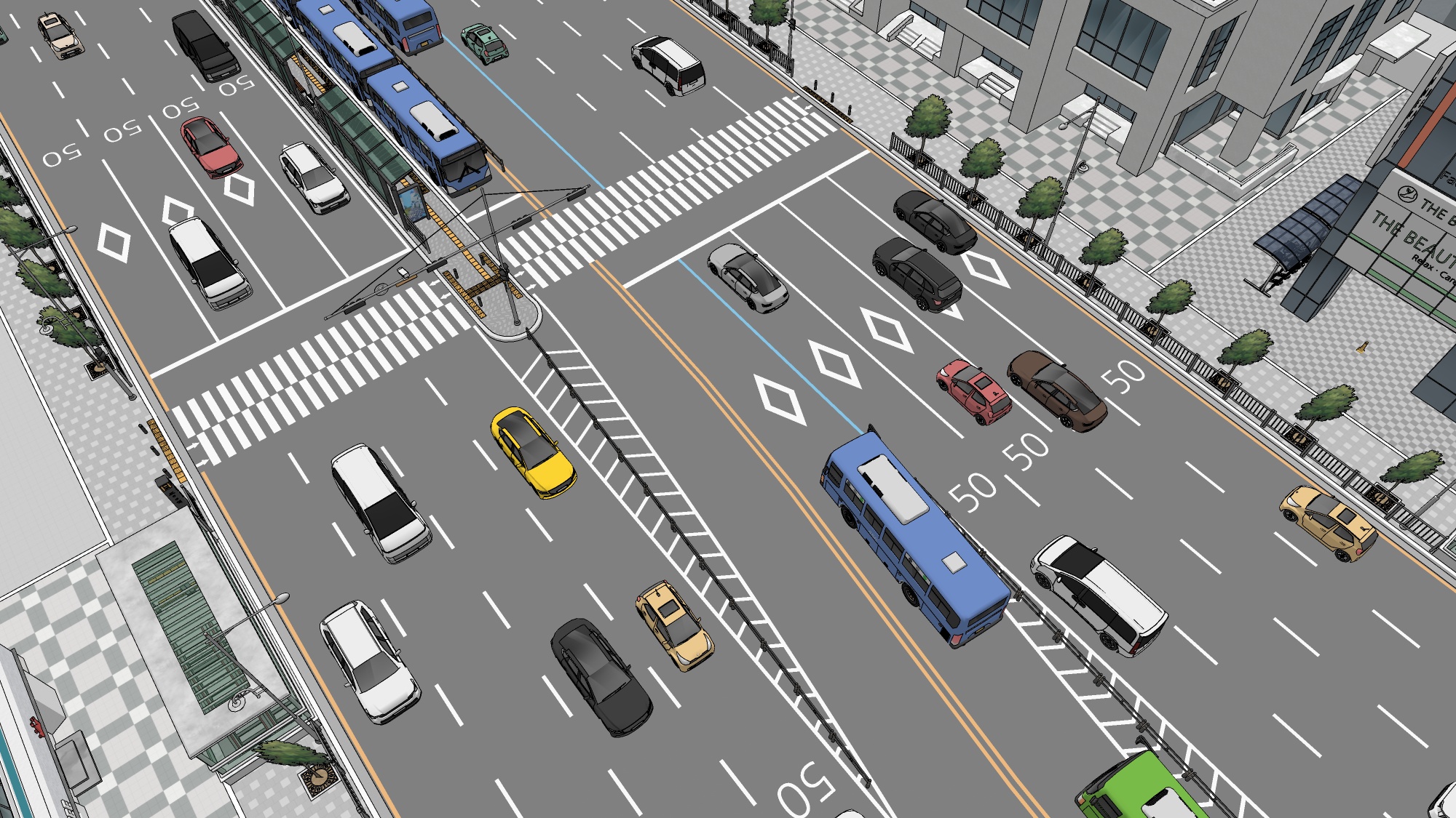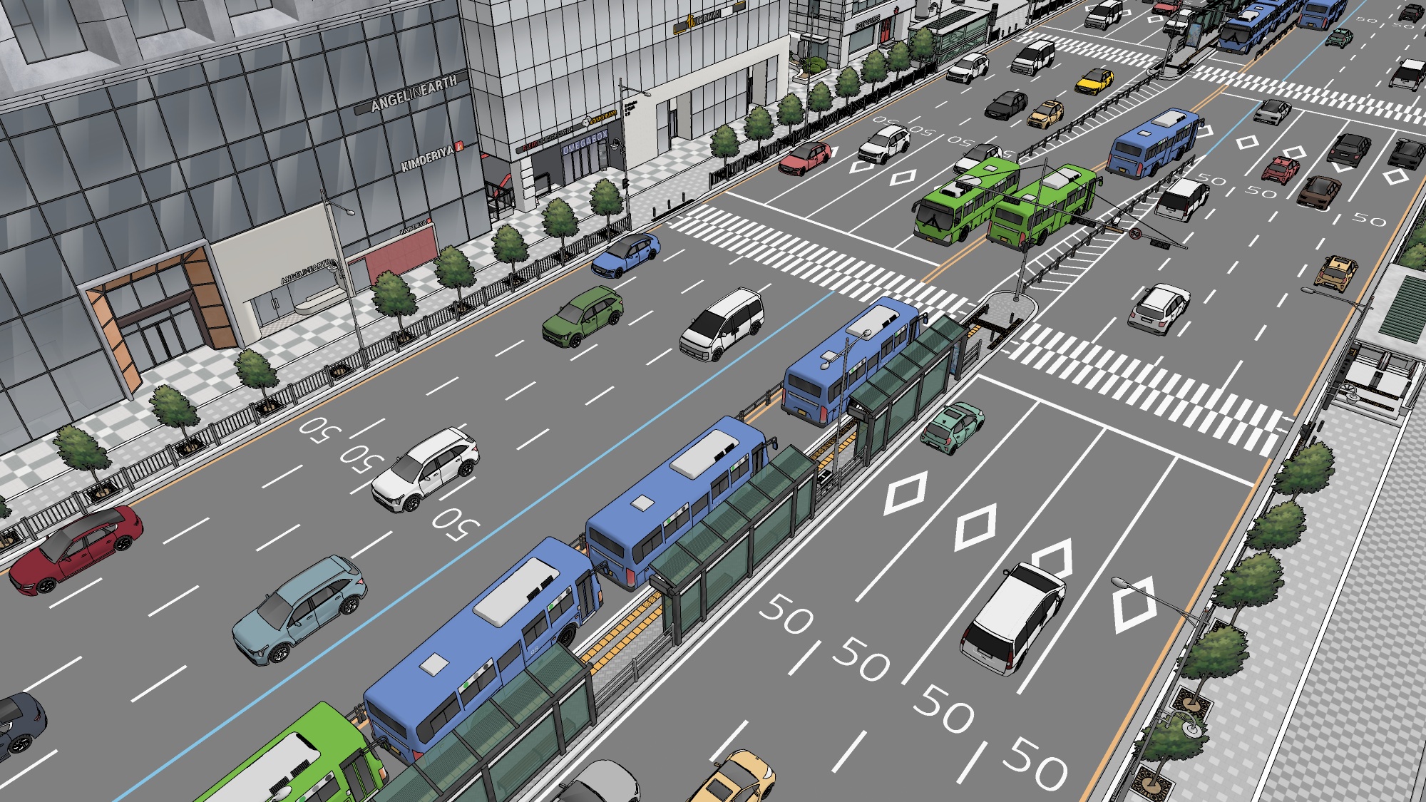 중앙차로 및 버스정류장과 함께 배경용 차량이 포함되어 있어