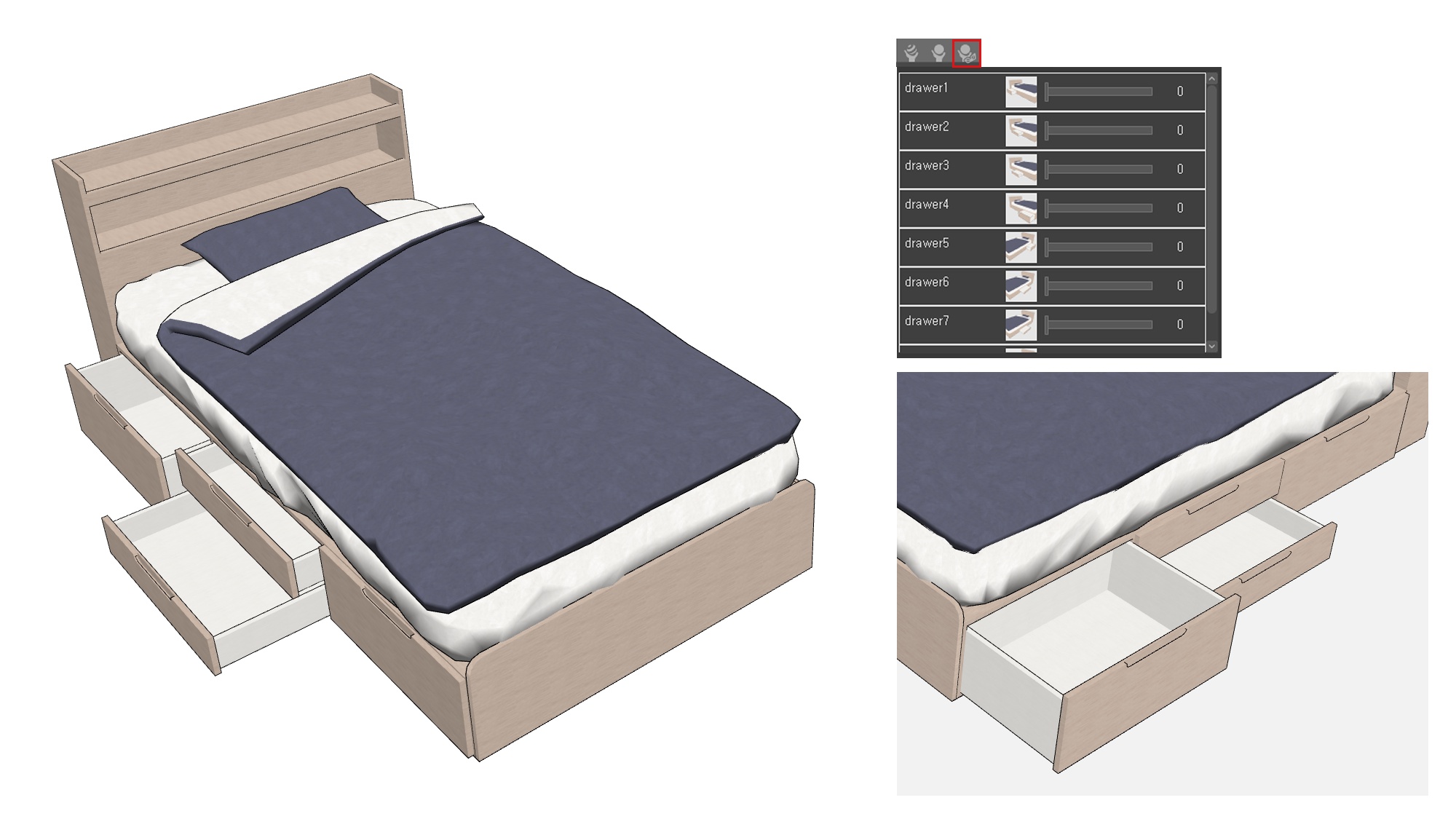 #침대 #가구 #실내가구 #서랍 #동적기능요소 #가동파츠 #현대 #일상물