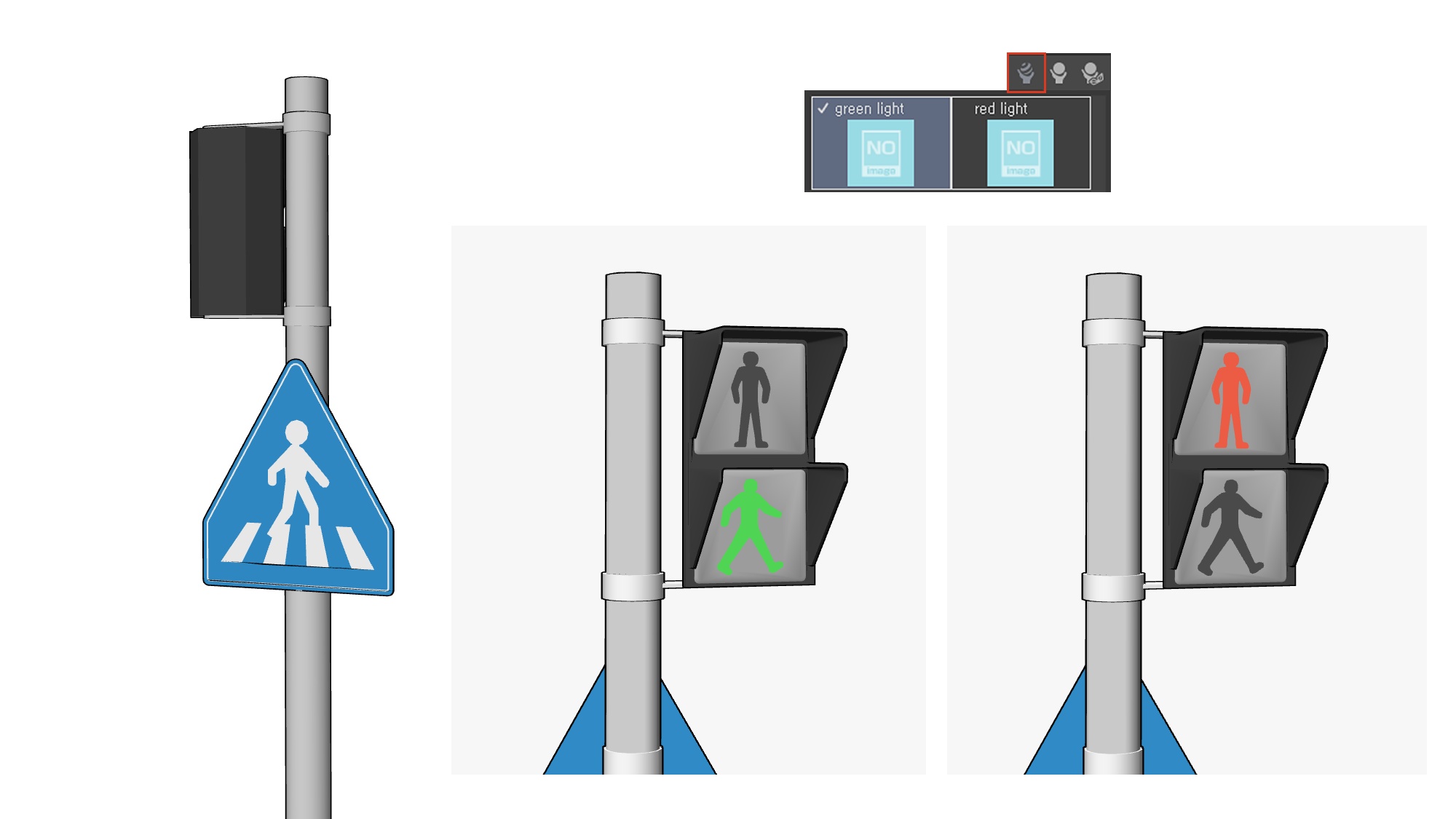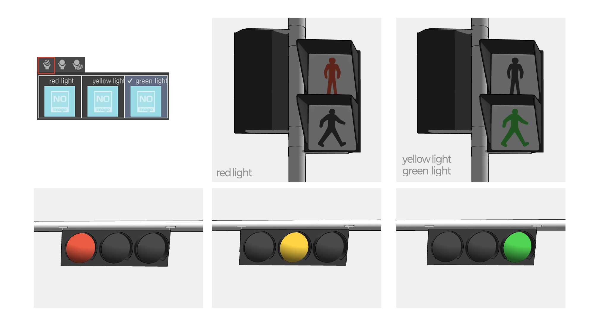 신호등에는 동적구성요소와 머테리얼이 적용되어