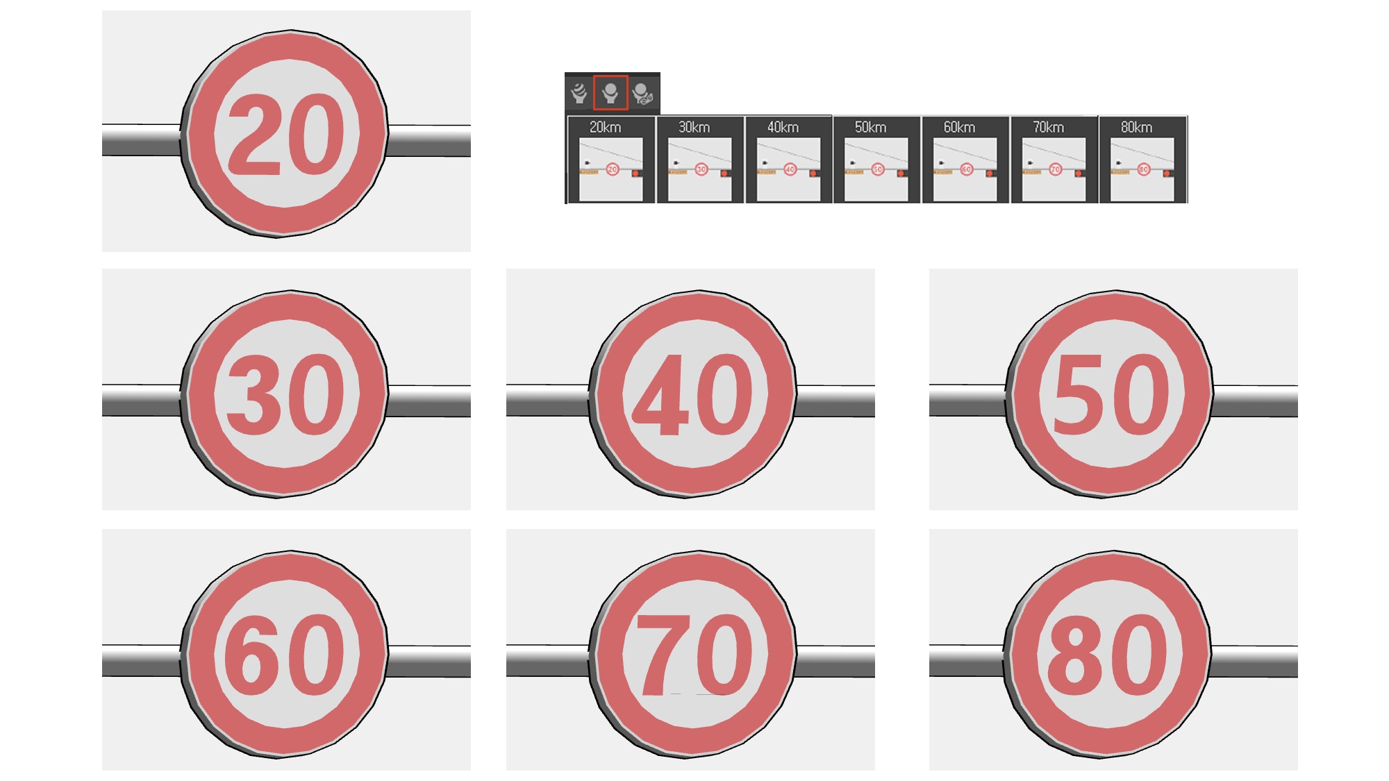 ※동적구성요소와 머테리얼로 신호등과 속도 표지판을 바꿀 수 있습니다.