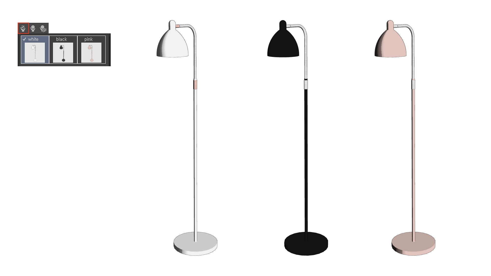 화이트, 블랙, 핑크 세 가지 색상으로 공간의 분위기에 맞게 색을 고를 수 있습니다.
