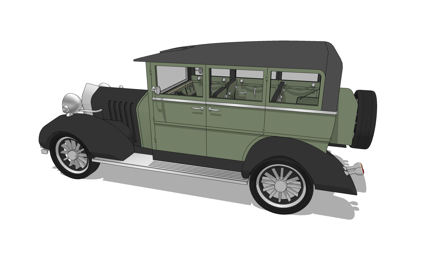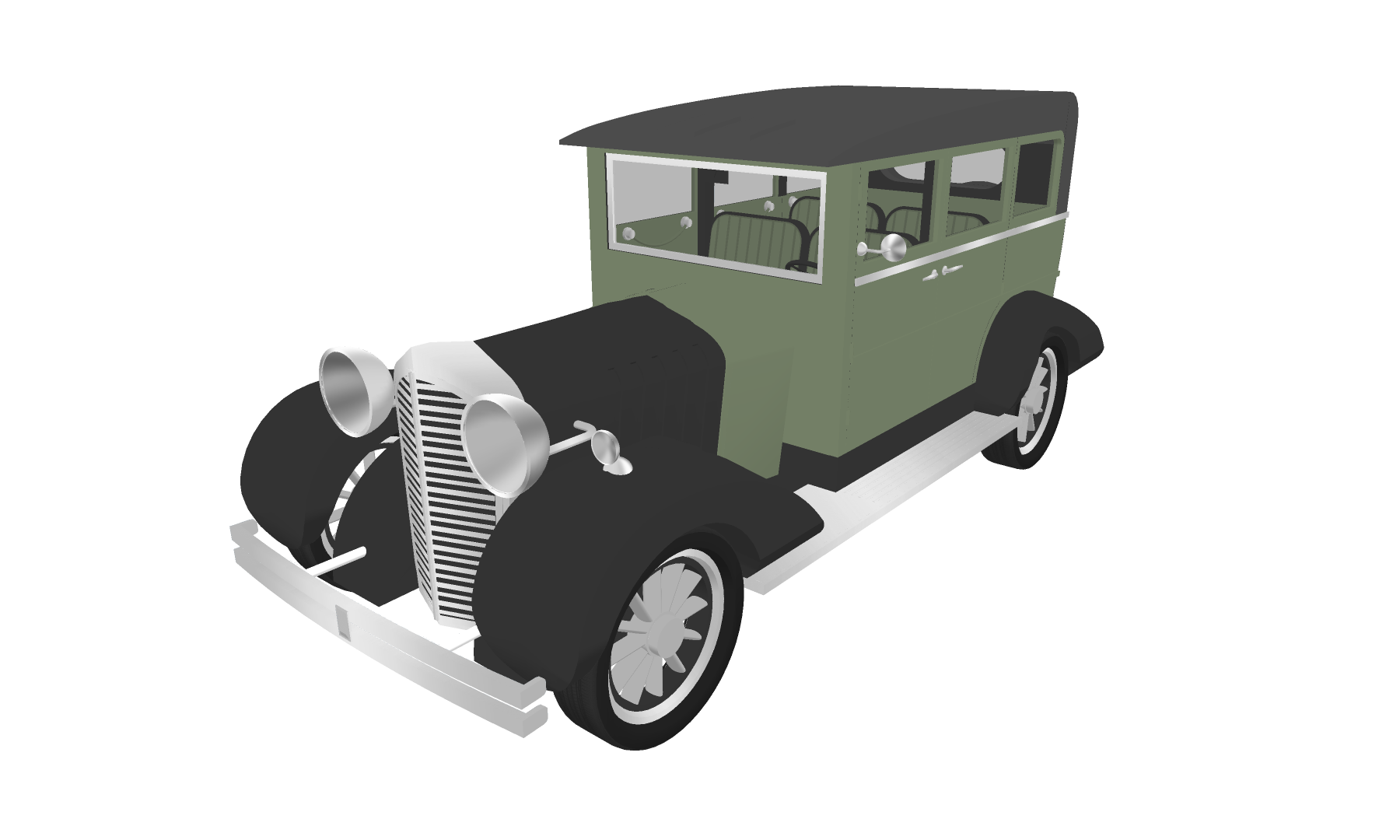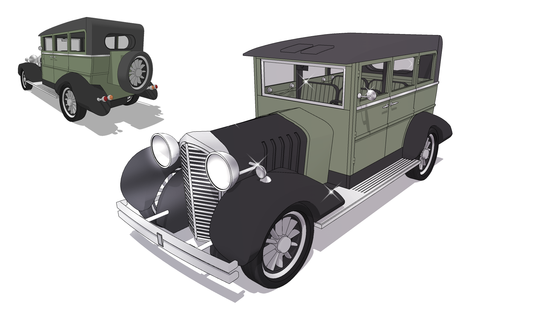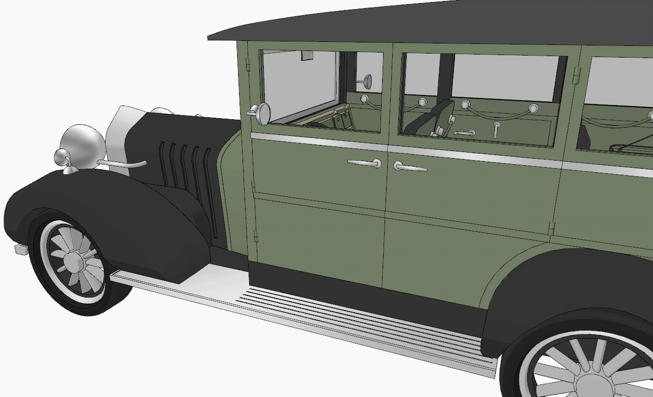 중세 특유의 디자인과 나오는 우아함이 돋보이는 올리브 그린 색의 자동차로