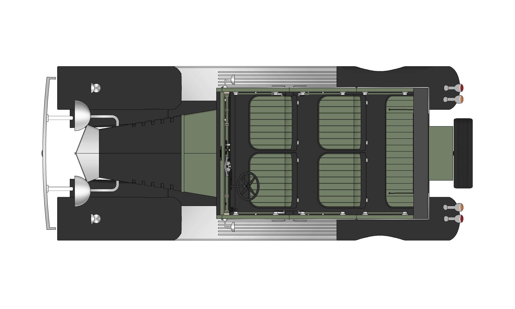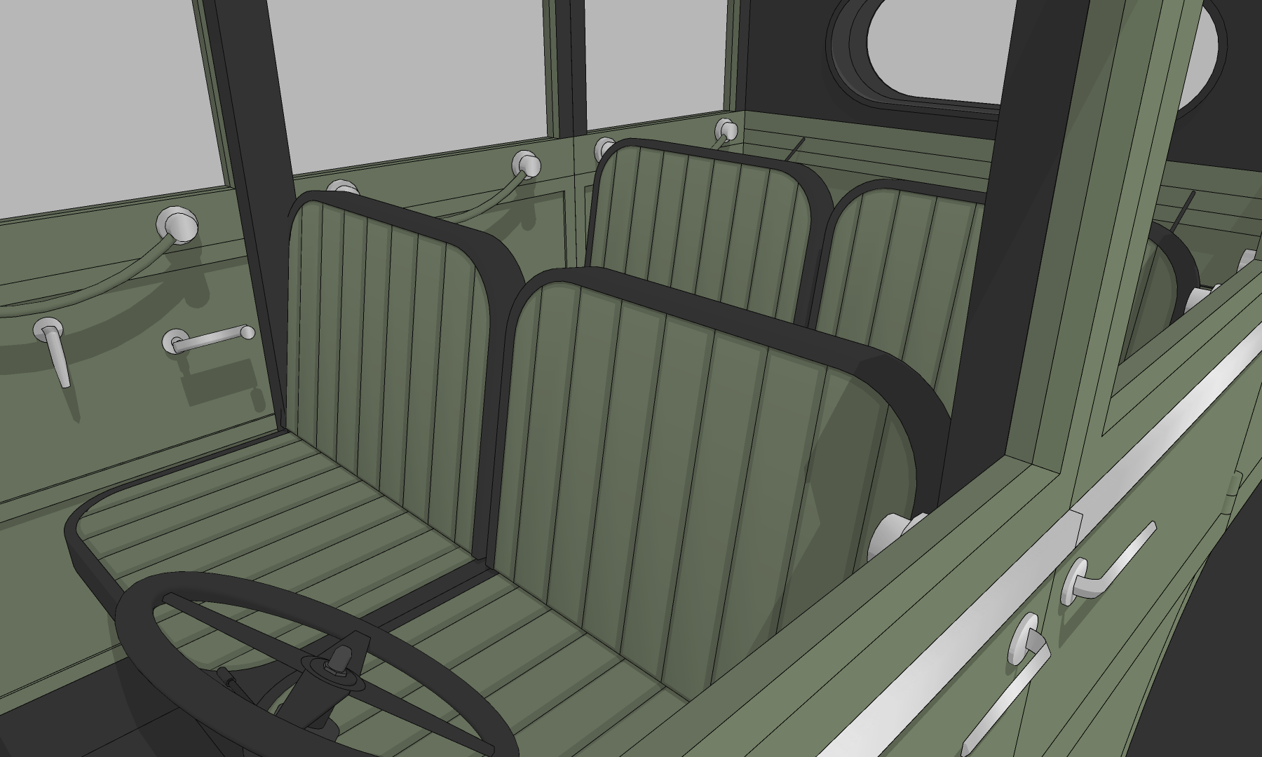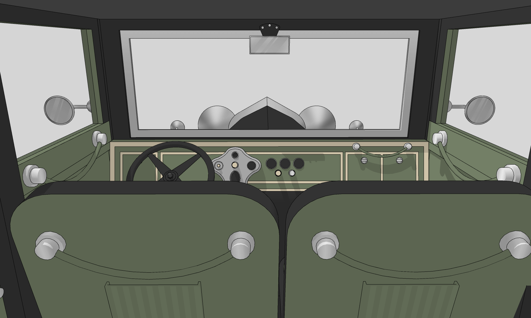 중세 특유의 디자인과 나오는 우아함이 돋보이는 올리브 그린 색의 자동차로