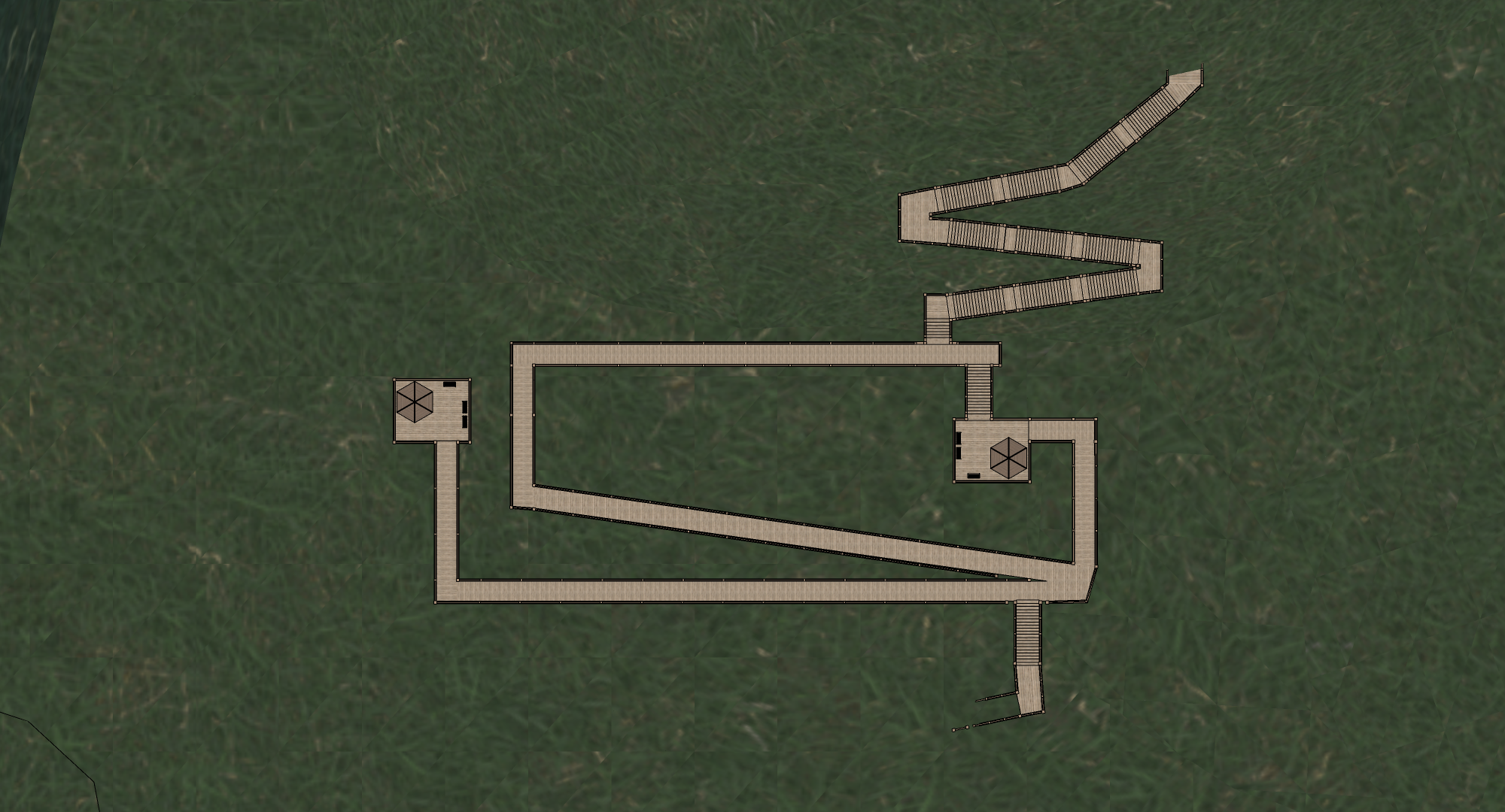 나무로 만들어진 계단과 길 그 끝에 잠시 앉을 수 있는 공간도 배치되어 있습니다.
