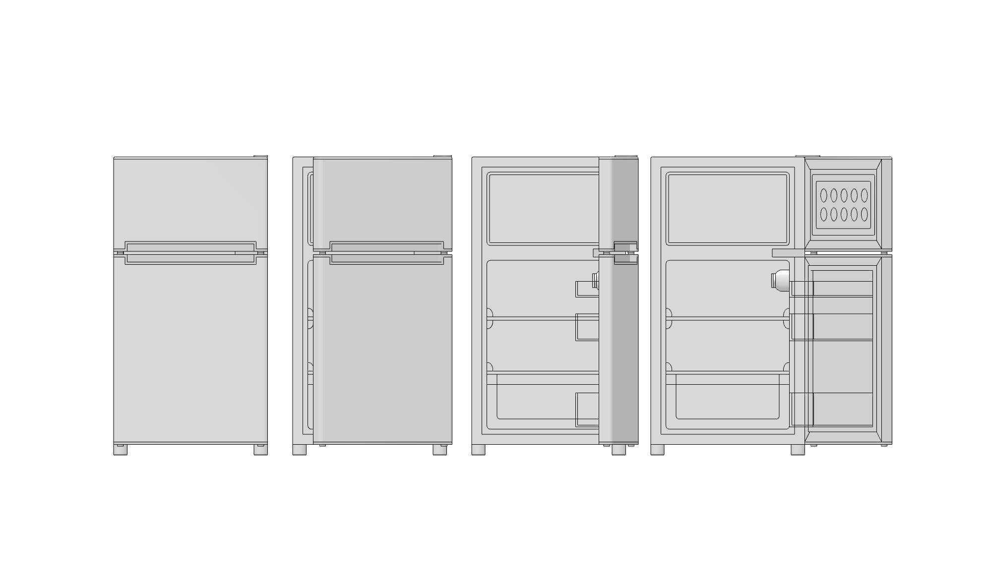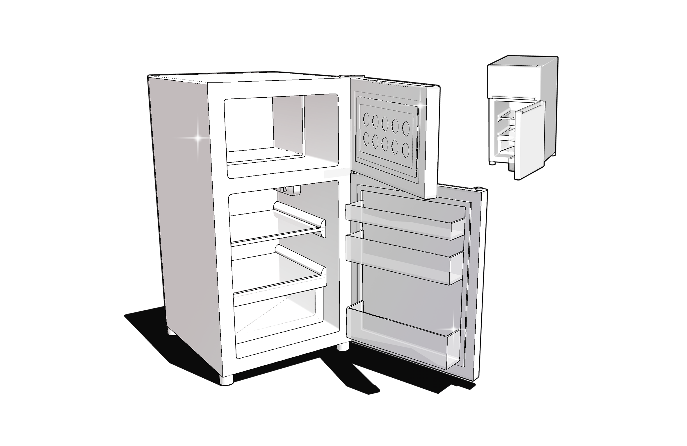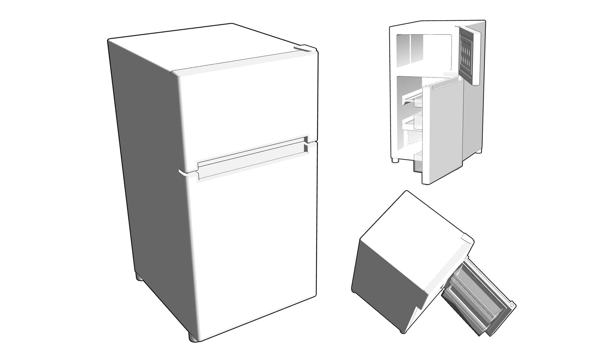 냉동고와 냉장고 문을 열 수 있는 동적구성요소가 포함되어있어