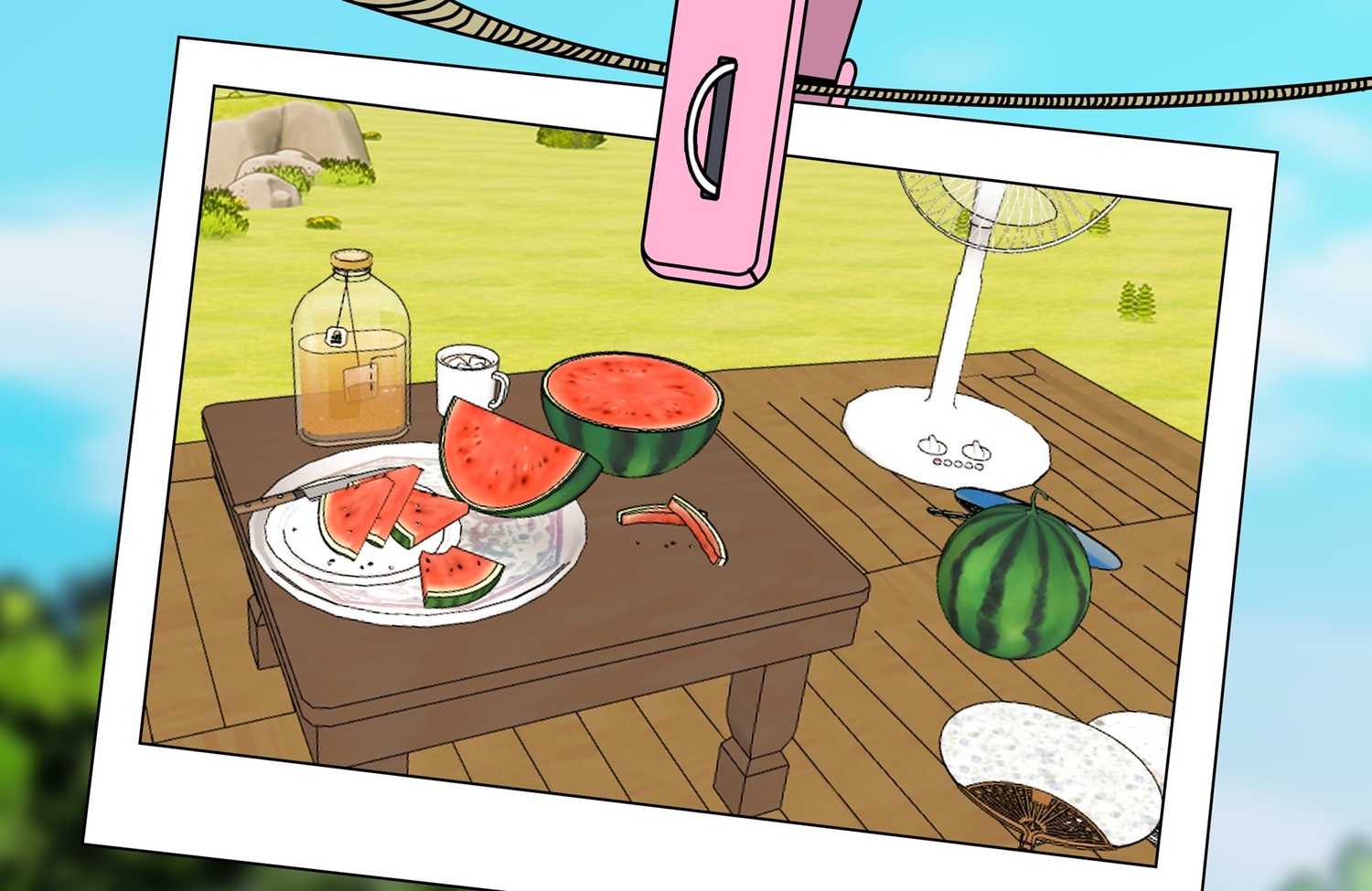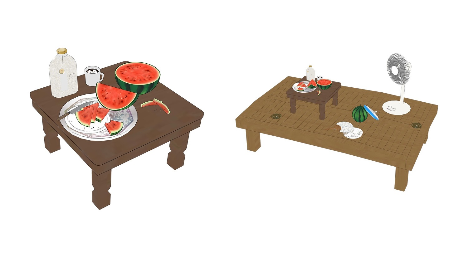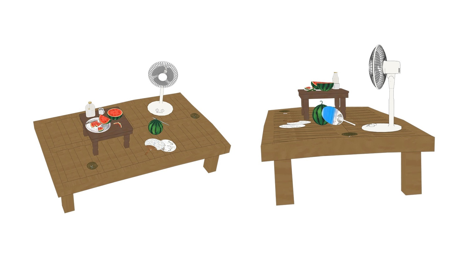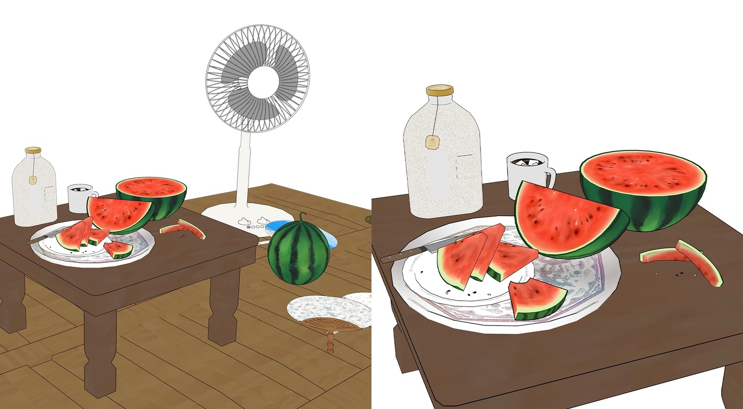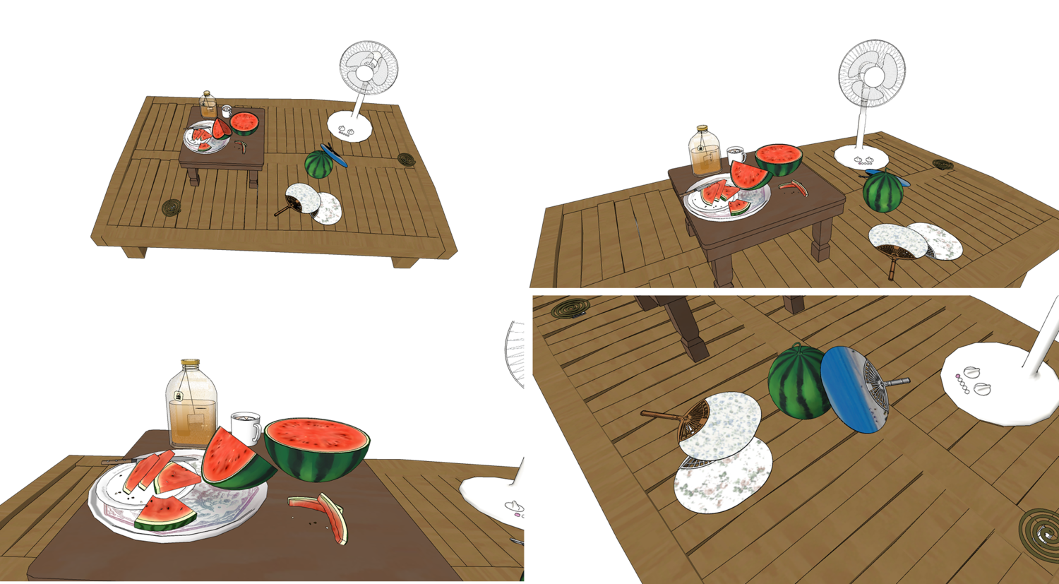 여러가지 형태(레이아웃 프리셋)의 수박과 선풍기, 모기향 등등