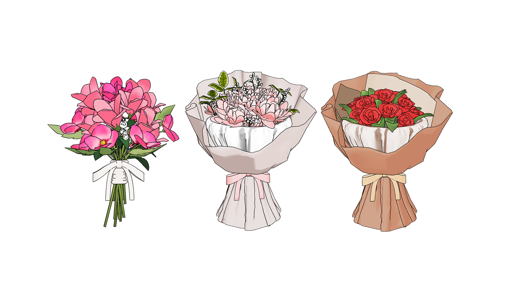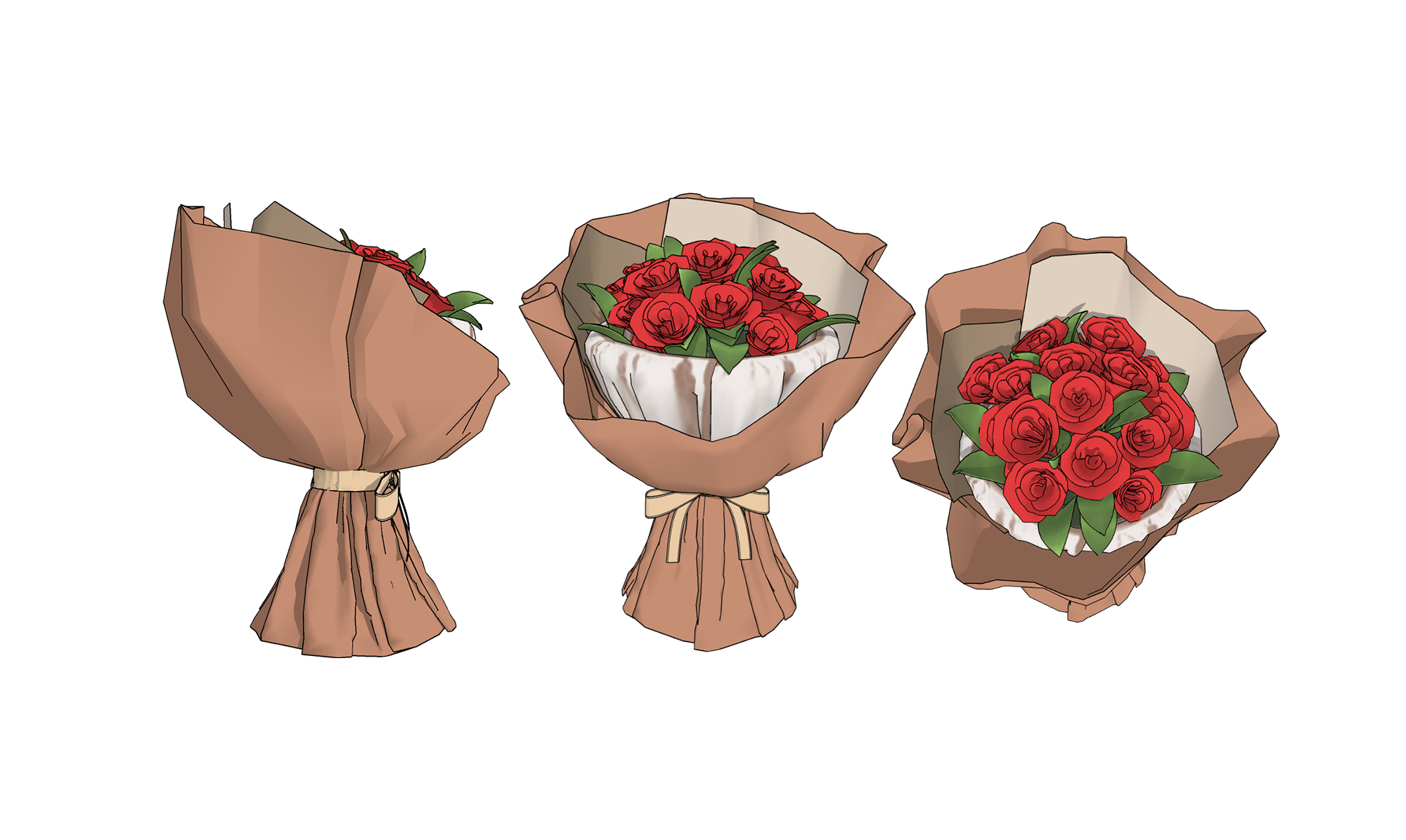 현대, 로판 등 다양한 장르에서 선물용으로 등장하는 꽃다발 3종 세트입니다.